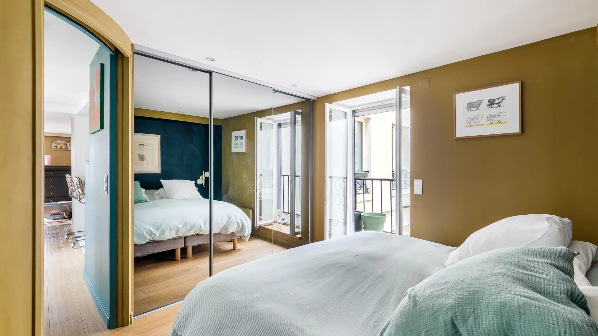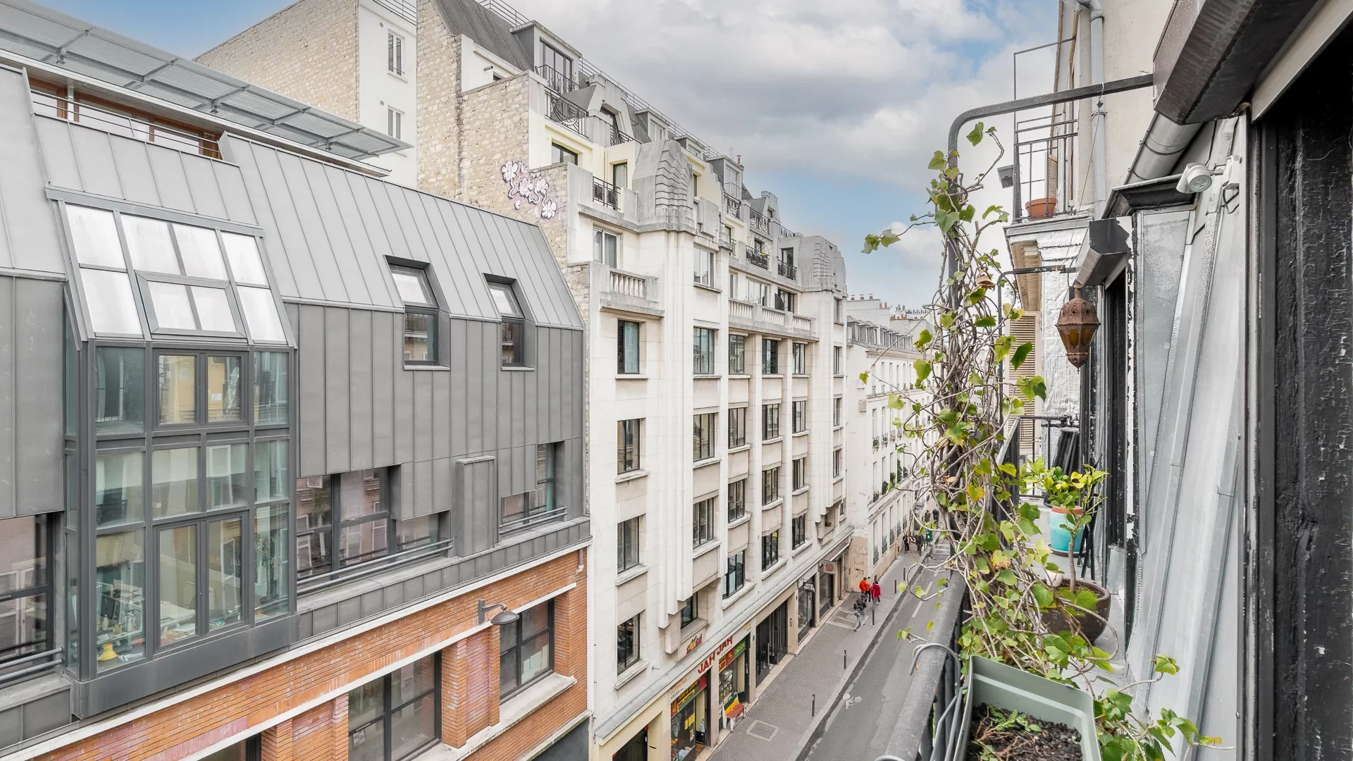 Situé dans un quartier vivant et commerçant, au quatrième et dernier étage par escalier d'un immeuble en pierre de Paris, cet appartement traversant de 74,13m² loi Carrez, entièrement rénové par architecte, bénéficie d'un balcon filant exposé plein sud.