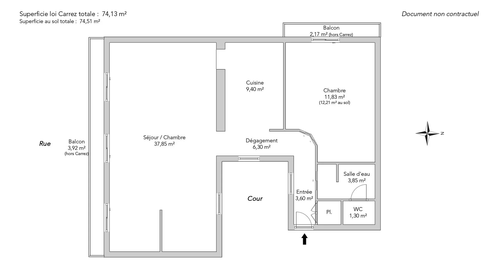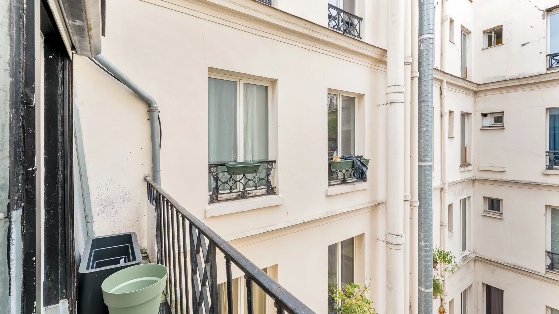 Il comprend une entrée, un double séjour avec accès au balcon et qui offre la possibilité d'y créer une seconde chambre, une cuisine semi-indépendante attenante et entièrement équipée, une chambre au calme absolu sur cour qui dispose également d'un petit balcon plein ouest, une salle de douche et des toilettes séparées.