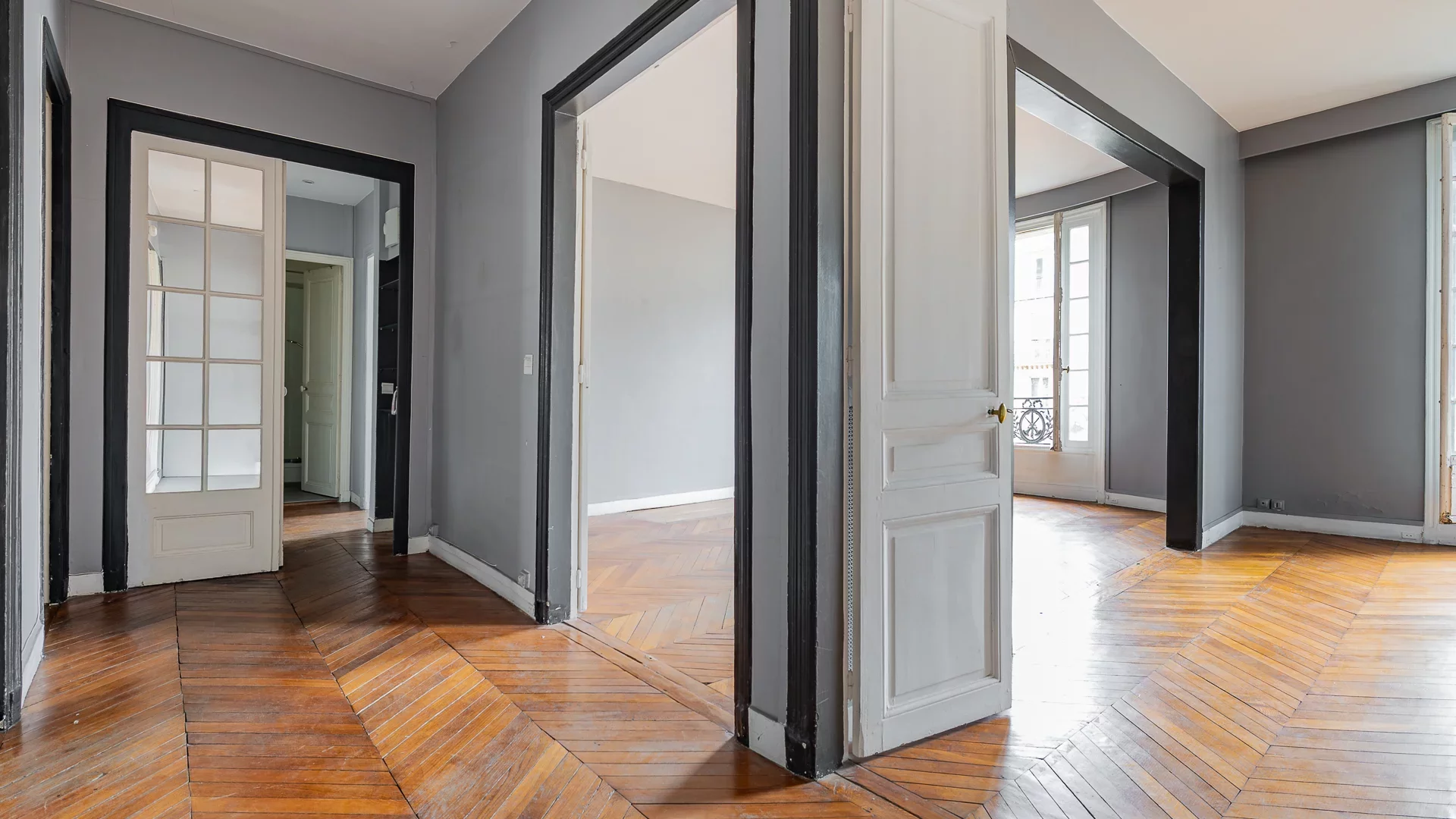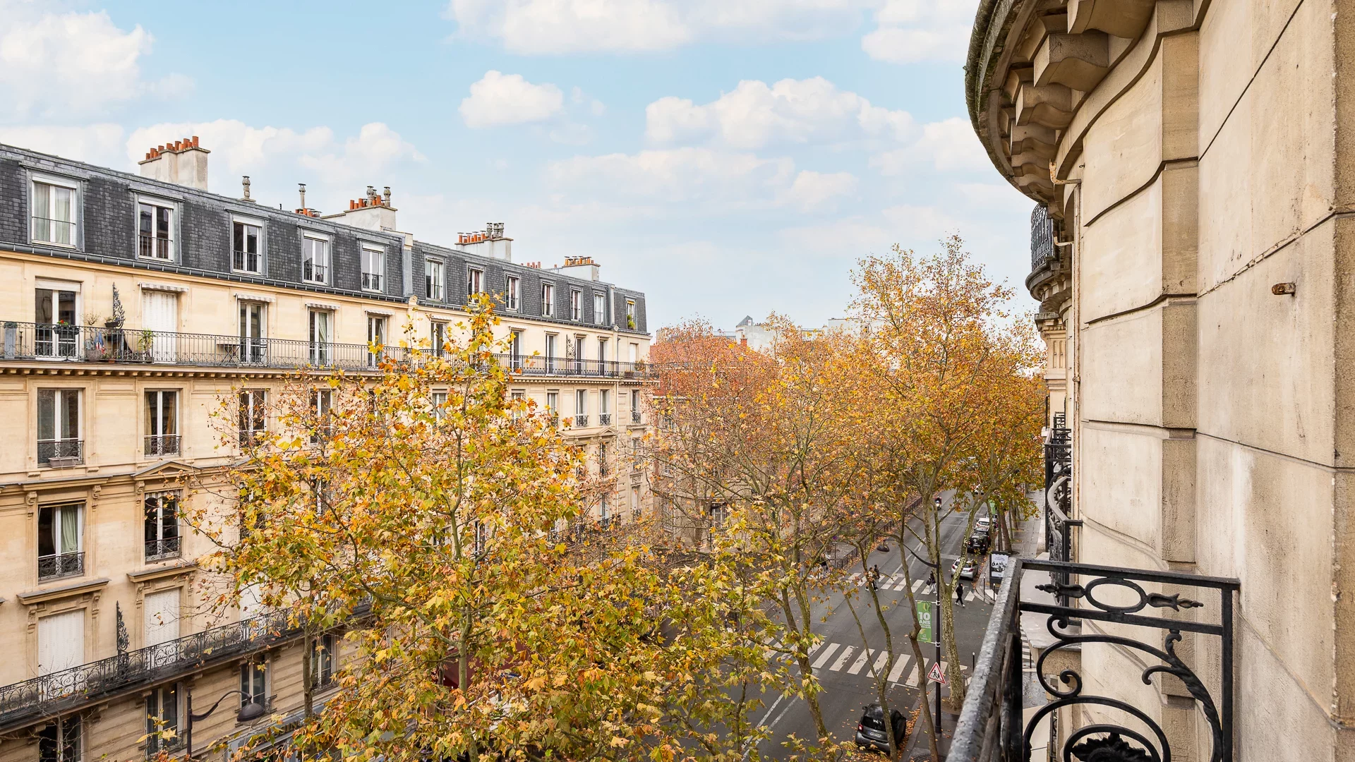 Au quatrième étage d'un immeuble haussmannien avec ascenseur et concierge, cet appartement de 108,50m² loi Carrez bénéficie d'une vue dégagée et est agrémenté de balcons. À la fois familial et de réception, il propose un plan optimisé avec un espace séjour, une salle à manger sur rue avec balcon, une grande cuisine sur cour, une chambre parentale avec balcon, salle de douche, sauna et toilettes, une deuxième chambre avec salle de bains et toilettes.