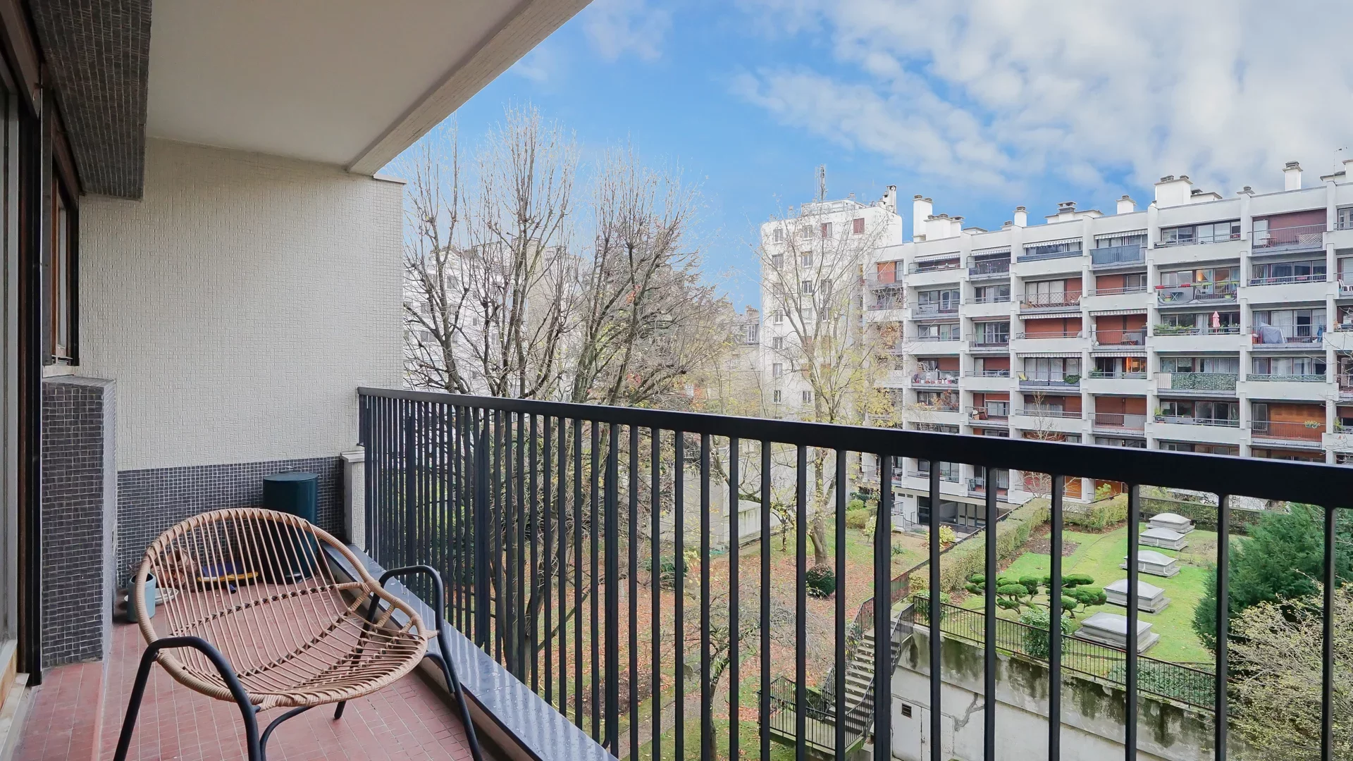 Il comprend une entrée qui dessert une cuisine, une pièce principale ouvrant sur un large balcon de plus de 6m² avec vue sur jardin, une salle de douche et des toilettes séparées. Nombreux rangements.
