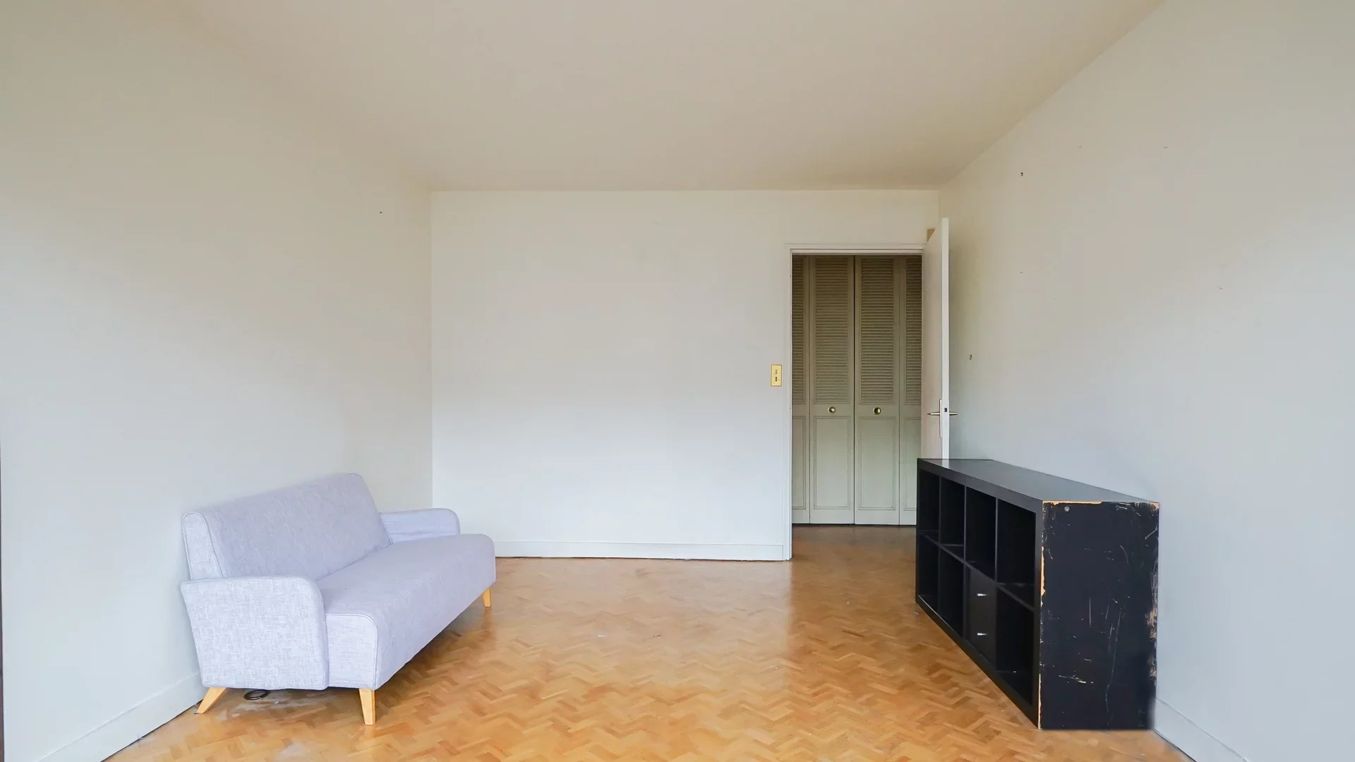 Situé au quatrième étage par ascenseur d’un immeuble datant de 1967 gardienné et sécurisé, grand studio de 36,34m² loi Carrez à rénover.