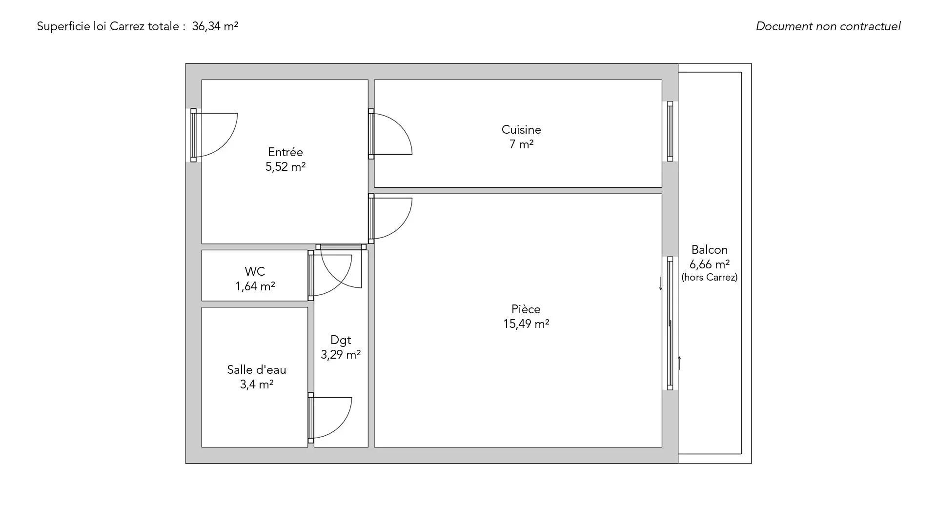 | 1x Balcon | 6.66 m² | Étage : 4ème |
