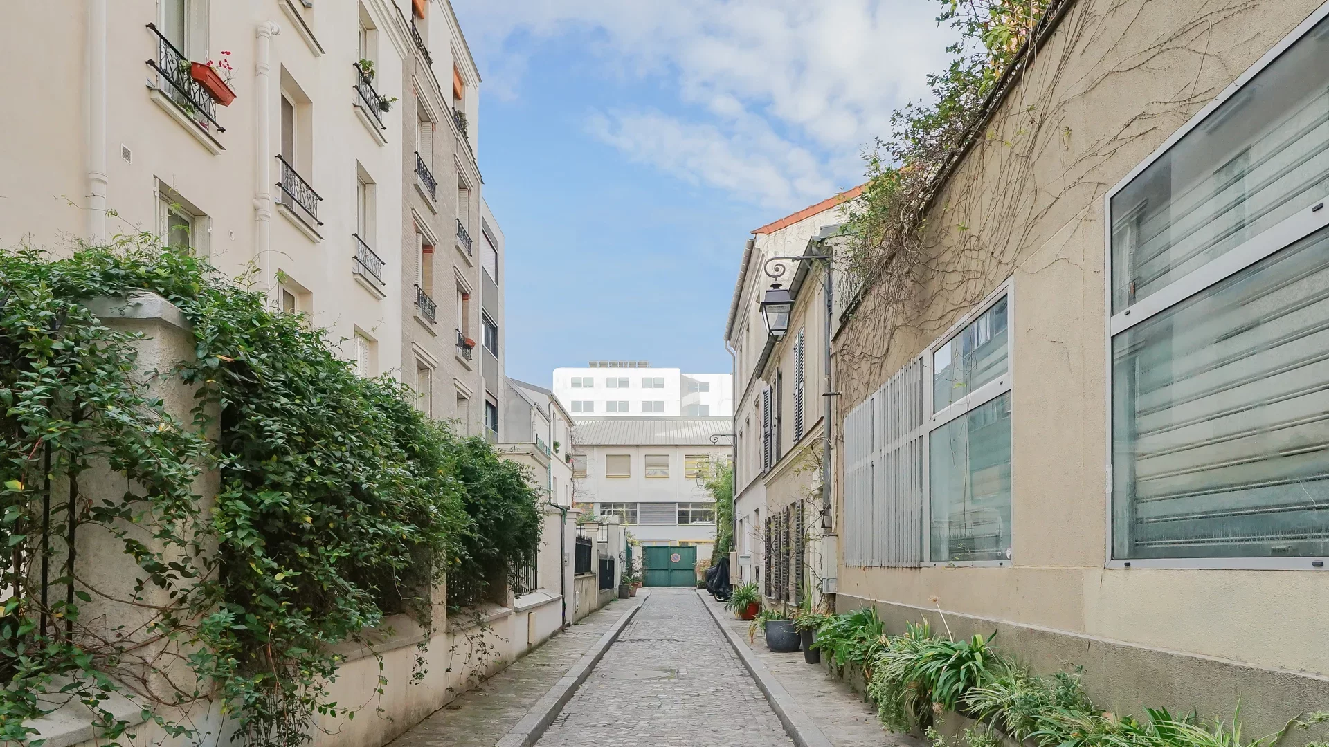 Passage confidentiel au calme absolu dans le 17e arrondissement, immeuble contemporain des années 70 abritant un ensemble composé de 7 studios de 23m² chacun, parfaitement distribués, ainsi qu’un appartement de 41m².