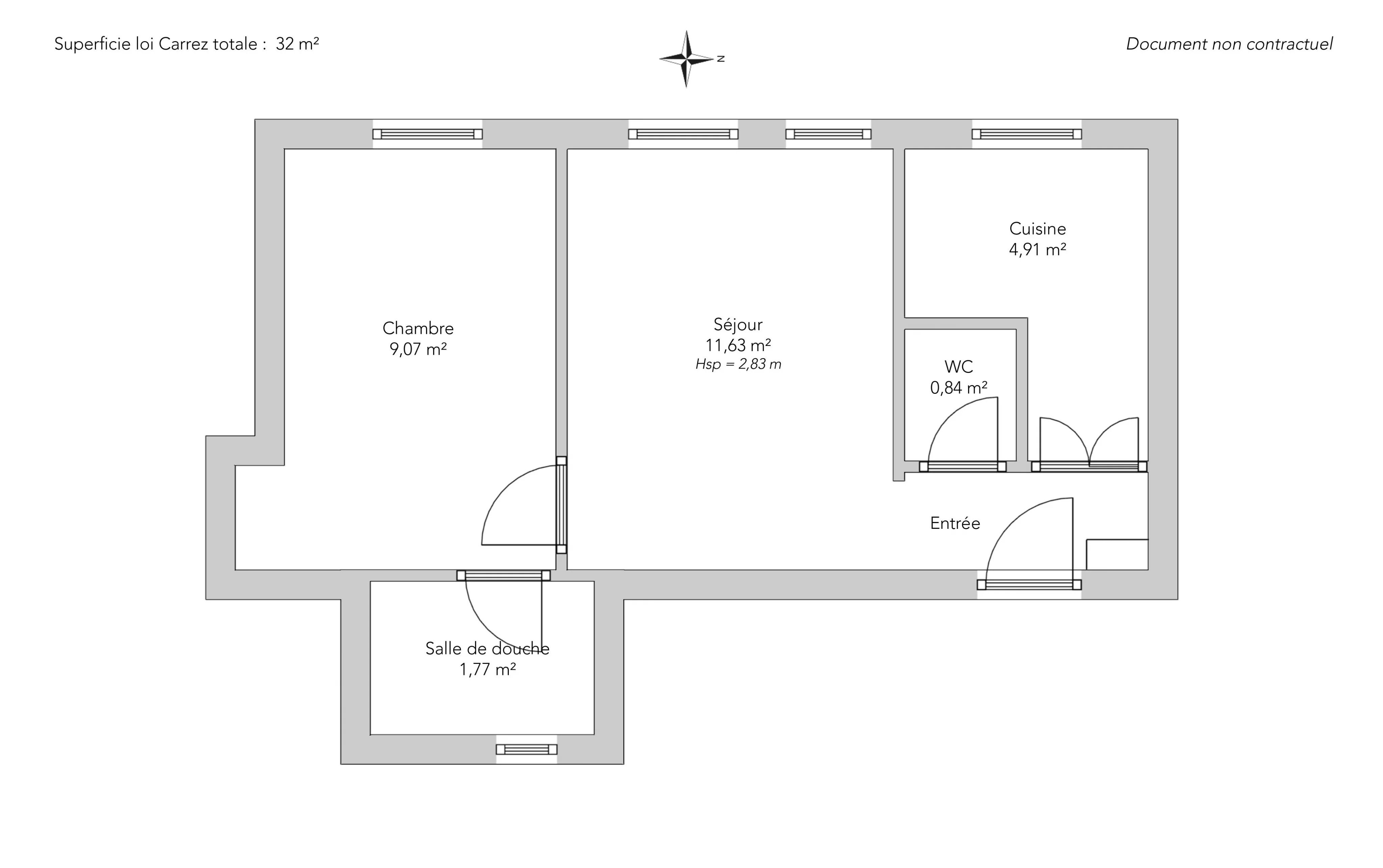 Il se compose d’une entrée, d’une cuisine séparée, une pièce de vie aux proportions équilibrée menant à une chambre au calme ainsi que d’une salle de douche. Les toilettes sont indépendantes, un vrai confort dans cette typologie.