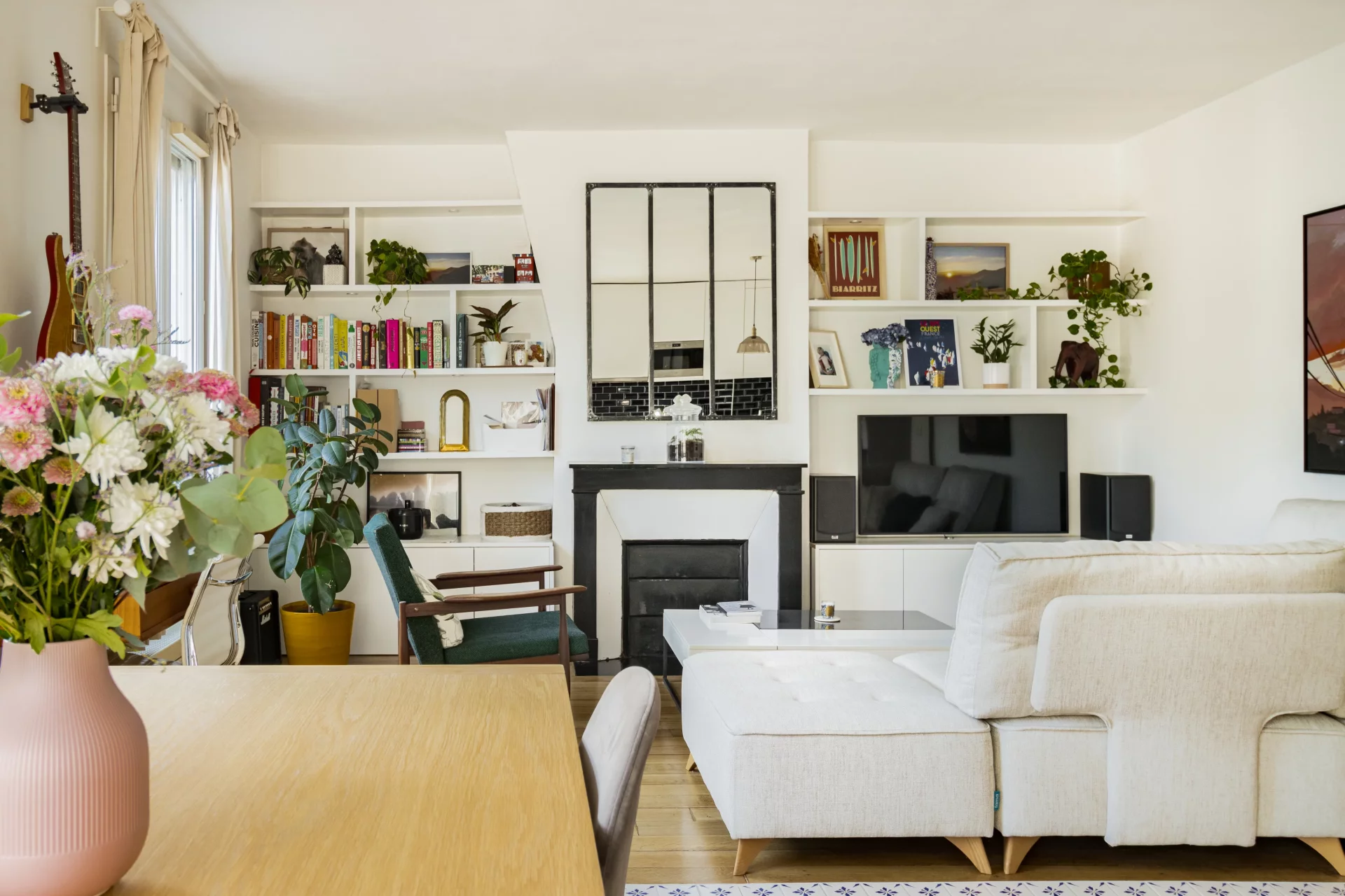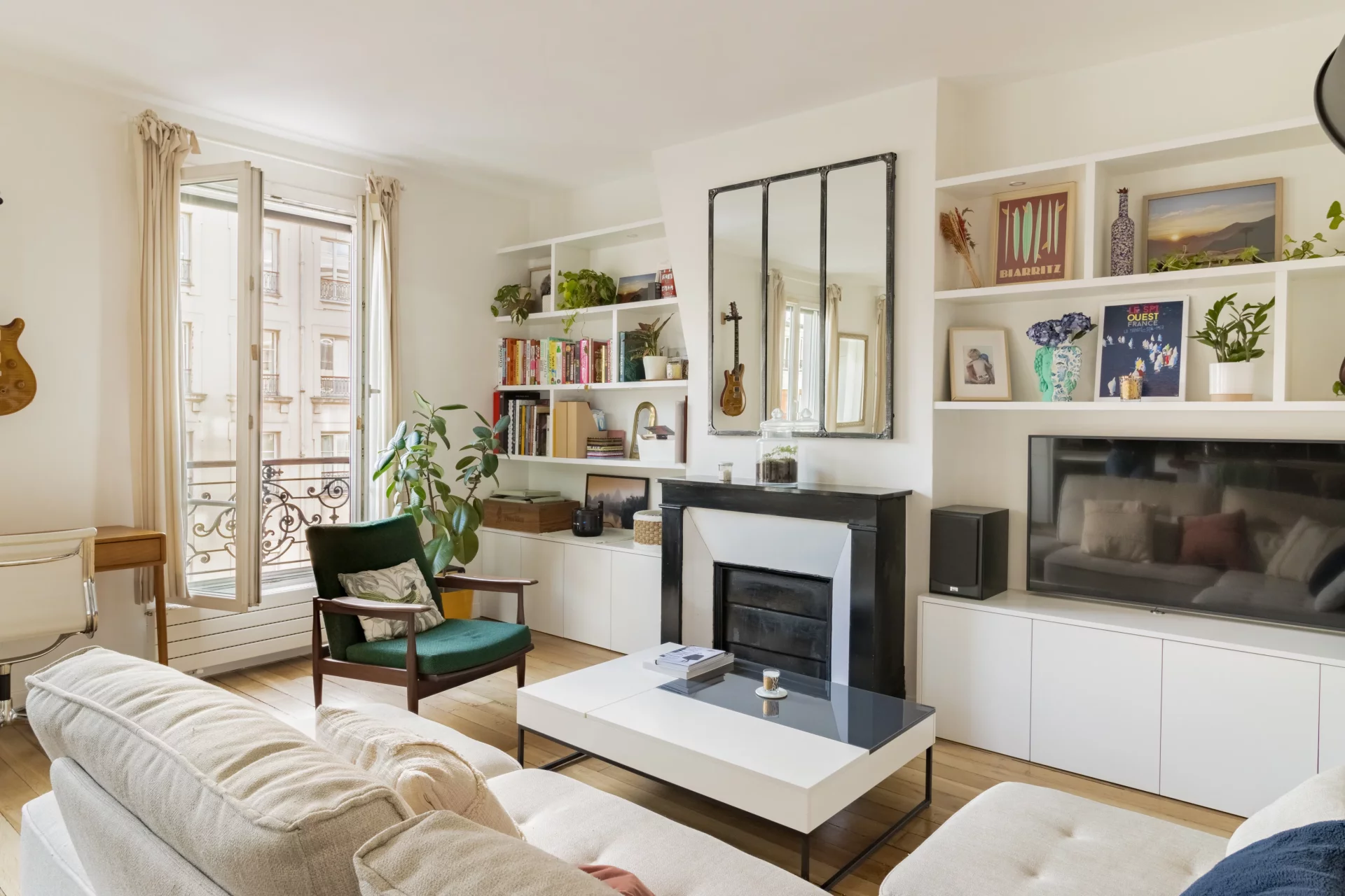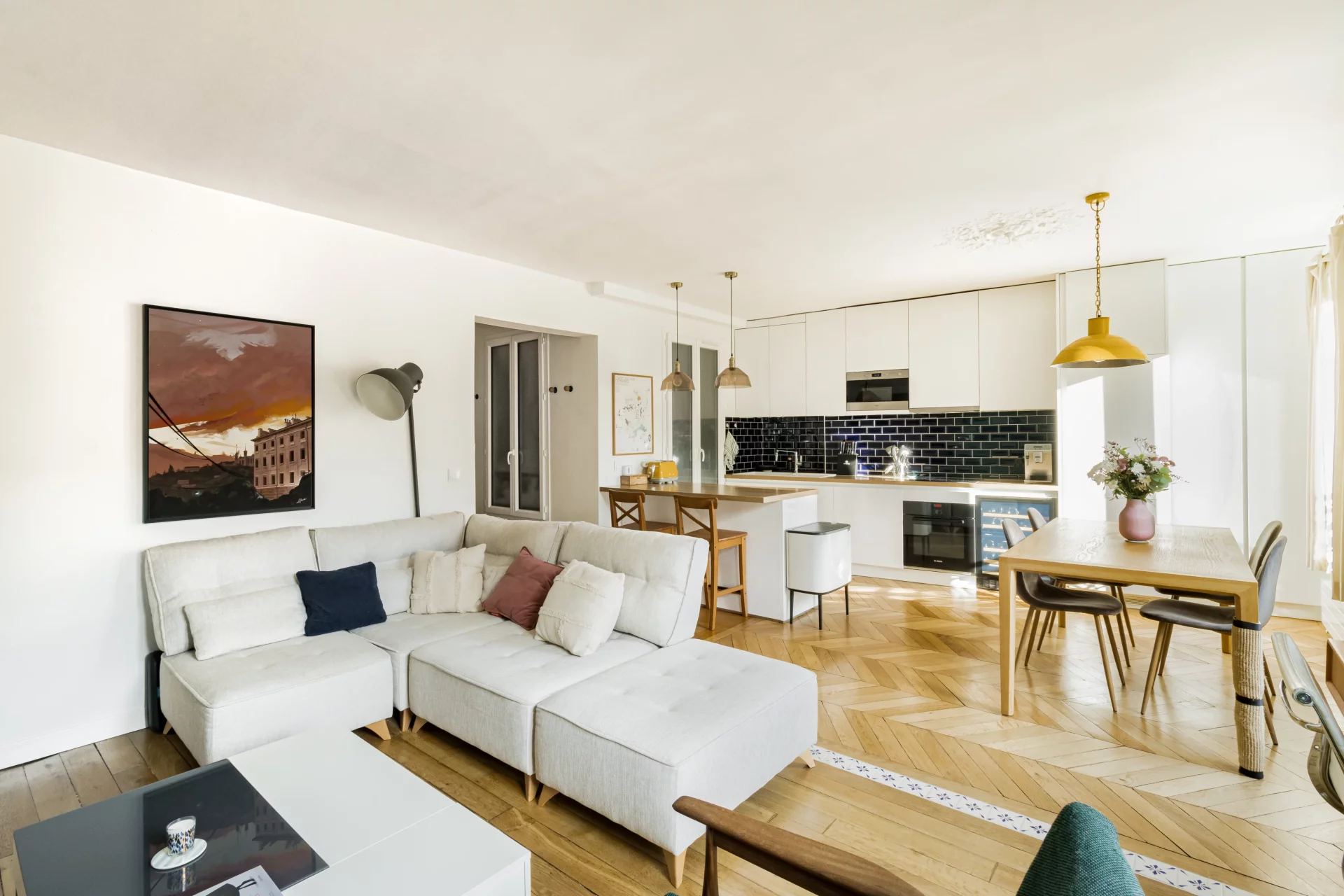 Le plan parfait comprend une entrée qui ouvre sur un agréable double séjour de 32,91m² prolongé par sa cuisine ouverte intégralement équipée. L'ensemble est baigné de soleil grâce à ses trois fenêtres exposées sud-est. Côté cour, au calme absolu, se trouvent une chambre avec dressing sur mesure et une salle de douche avec des toilettes.
