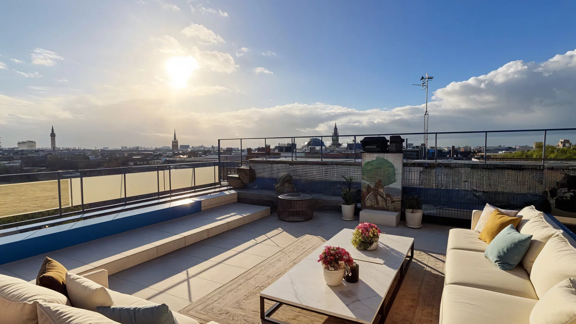 Sa terrasse spectaculaire de 190m², offrant une vue imprenable sur la ville, constitue un véritable espace de vie à ciel ouvert.