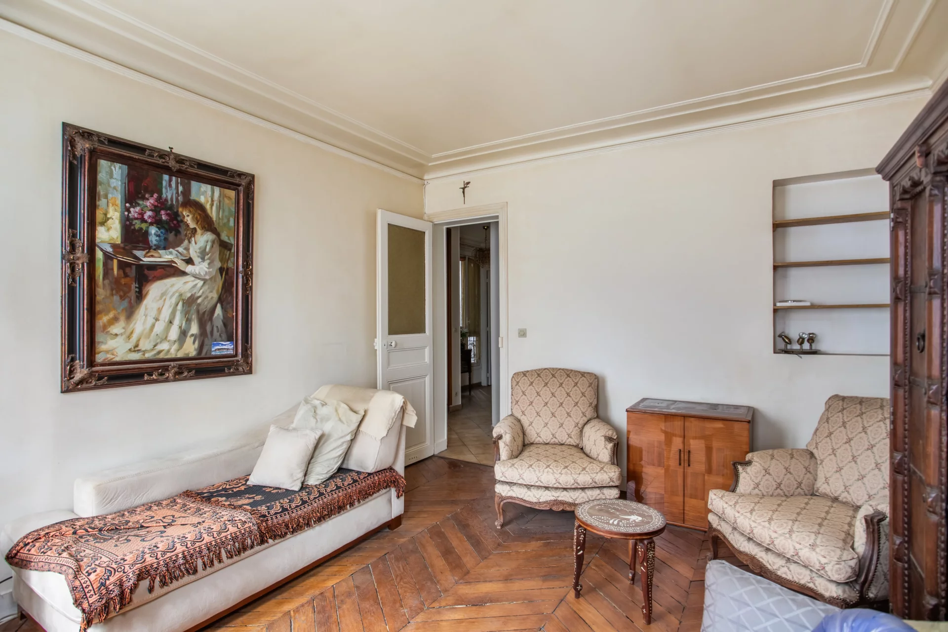 La pièce de réception, orientée ouest sur l’avenue, bénéficie d’une belle clarté.