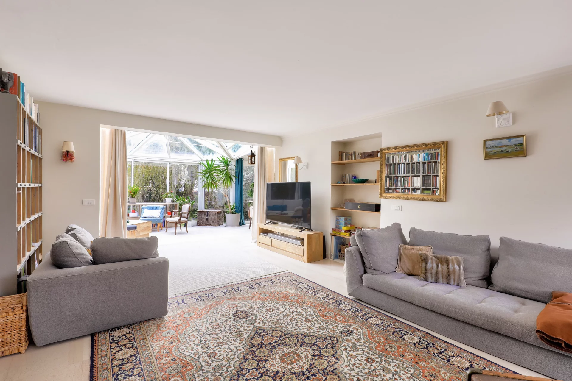Dès le rez-de-chaussée, une entrée accueillante ouvre sur un séjour traversant baigné de lumière, prolongé par une vaste véranda de 53 m² qui crée un espace de vie supplémentaire exceptionnel, utilisable en salon d’hiver, salle à manger ou atelier créatif. Une cuisine fermée, entièrement équipée, permet un cadre chaleureux et fonctionnel. Le même niveau accueille une suite parentale, avec salle d’eau privative, ainsi que des toilettes invités.