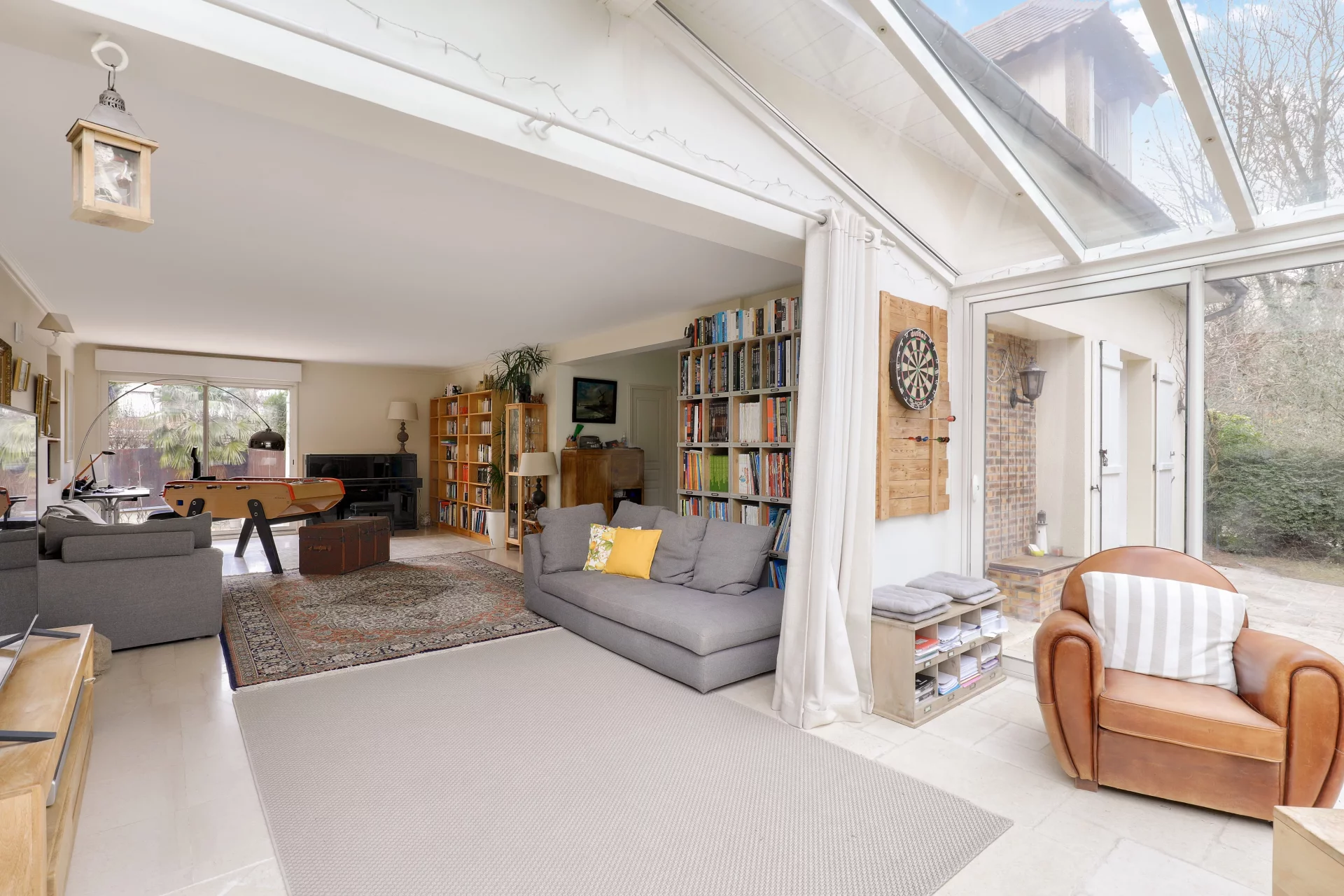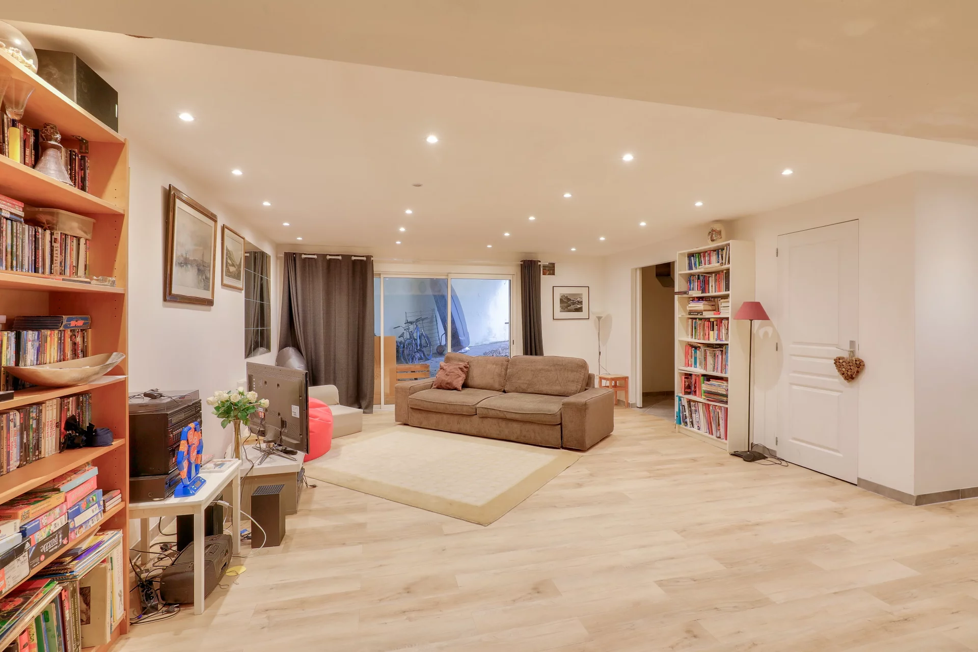 Le sous-sol total révèle un espace rare : une salle de jeux de 60 m², parfaite pour des après-midis ludiques, un home cinéma ou une salle de sport, agrémentée d’une grande cave et d’un atelier, idéal pour le bricolage ou le stockage.