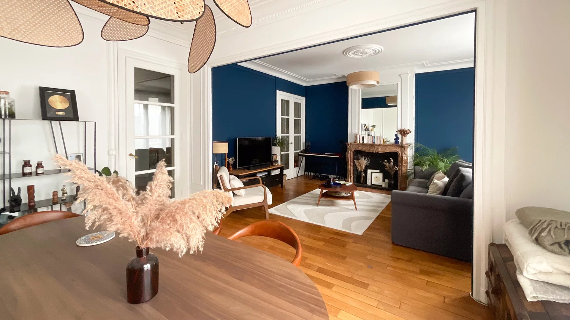 Dès l’entrée, le charme opère : le hall s’ouvre sur un double séjour lumineux de 36m², sublimé par ses cheminées en marbre, son parquet raffiné et ses moulures d’époque. De l’autre côté, une cuisine équipée vous attend, alliant fonctionnalité et confort.