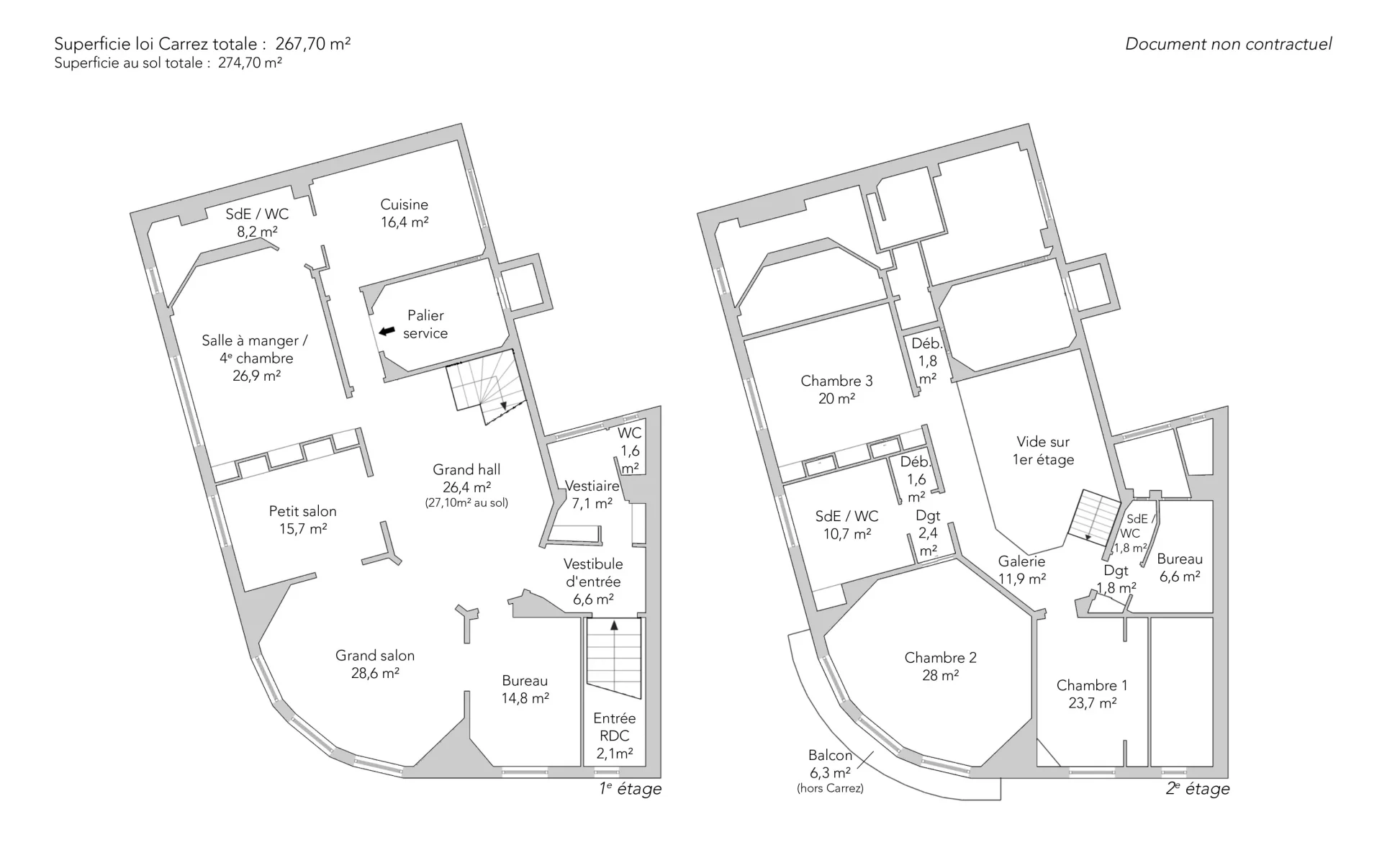 Appartement familial et de réception de 267,70m² loi Carrez et 274,70m² au sol répartis sur deux niveaux avec une entrée indépendante.