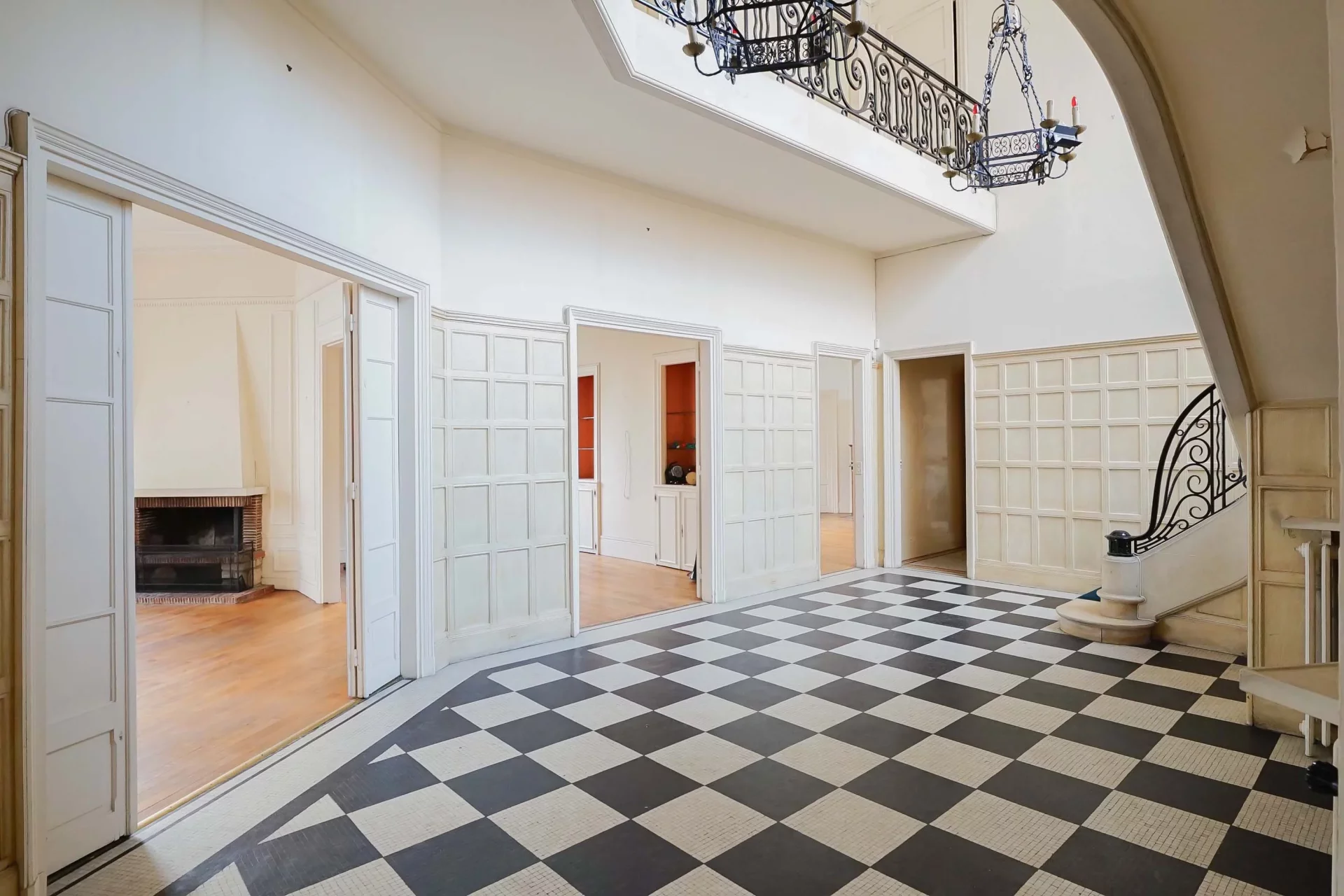 Cet appartement comme une maison saura vous charmer par son parquet d'époque, ses belles cheminées, grandes ouvertures et un hall majestueux avec un escalier en pierre et fer forgé, offrant une hauteur sous plafond de 7 mètres.