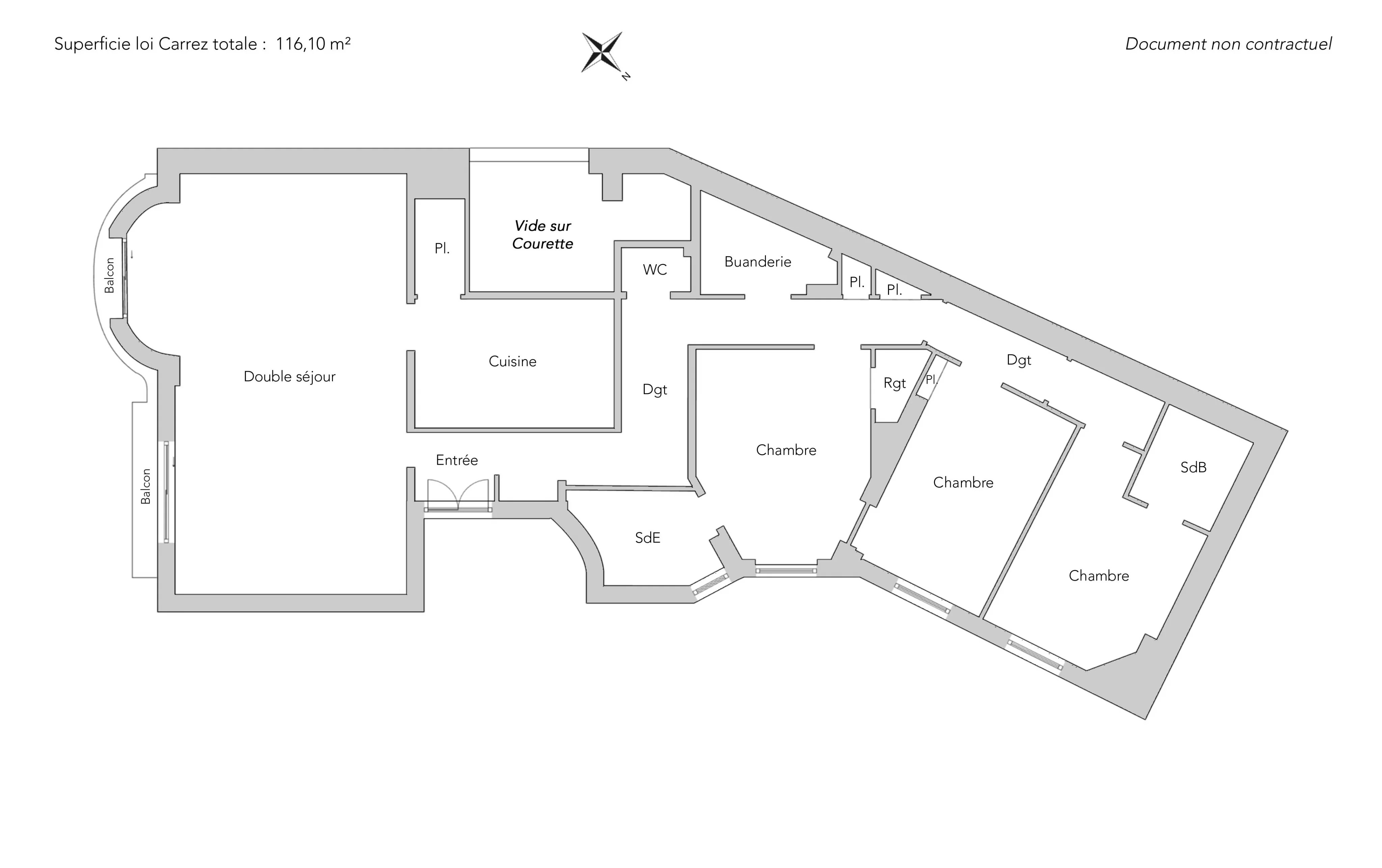 Il comporte une entrée agrémentée de nombreux rangements, un double séjour sur l'avenue, orienté sud-est et qui bénéficie de deux balconnets, et une cuisine indépendante aménagée et équipée. L'espace nuit, entièrement sur cour, comprend un dégagement qui dessert une première chambre dotée de sa salle de douche et de son espace dressing, des toilettes séparées, un espace buanderie, des rangements et deux chambres supplémentaires et une salle de bains avec des toilettes.