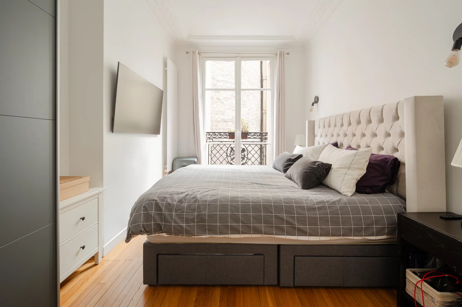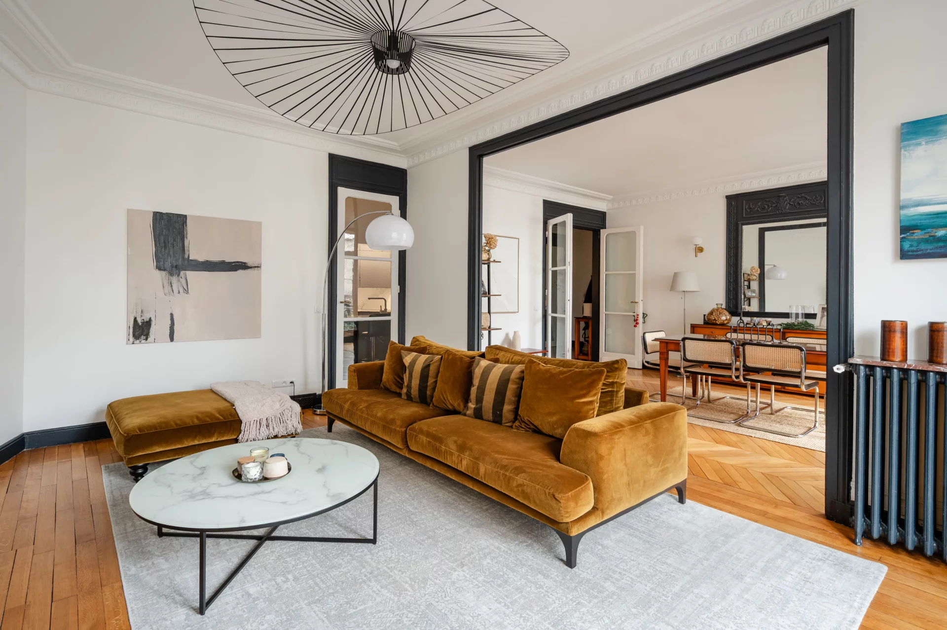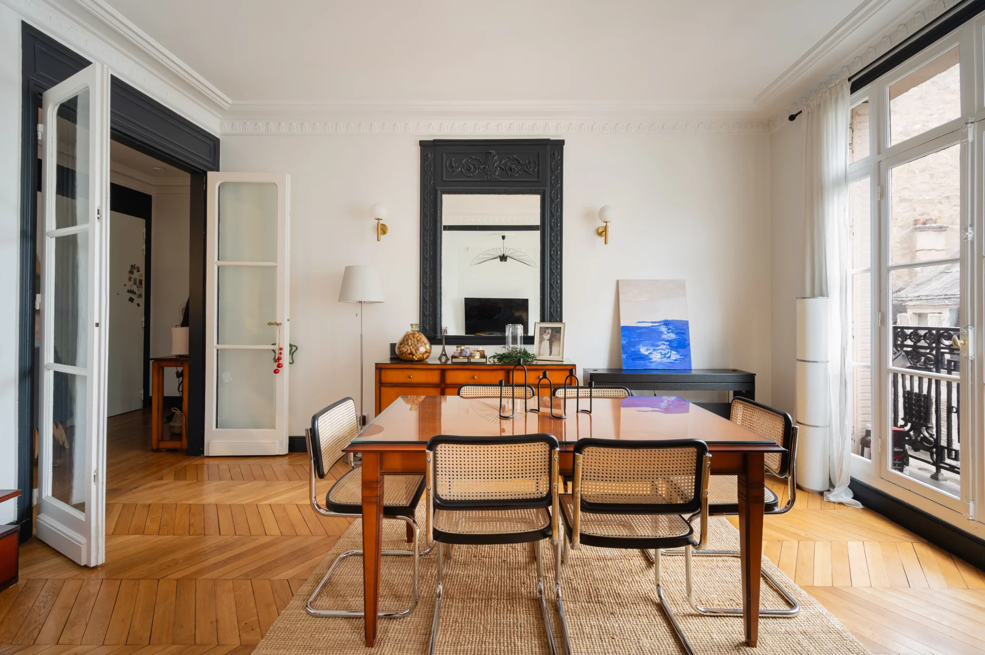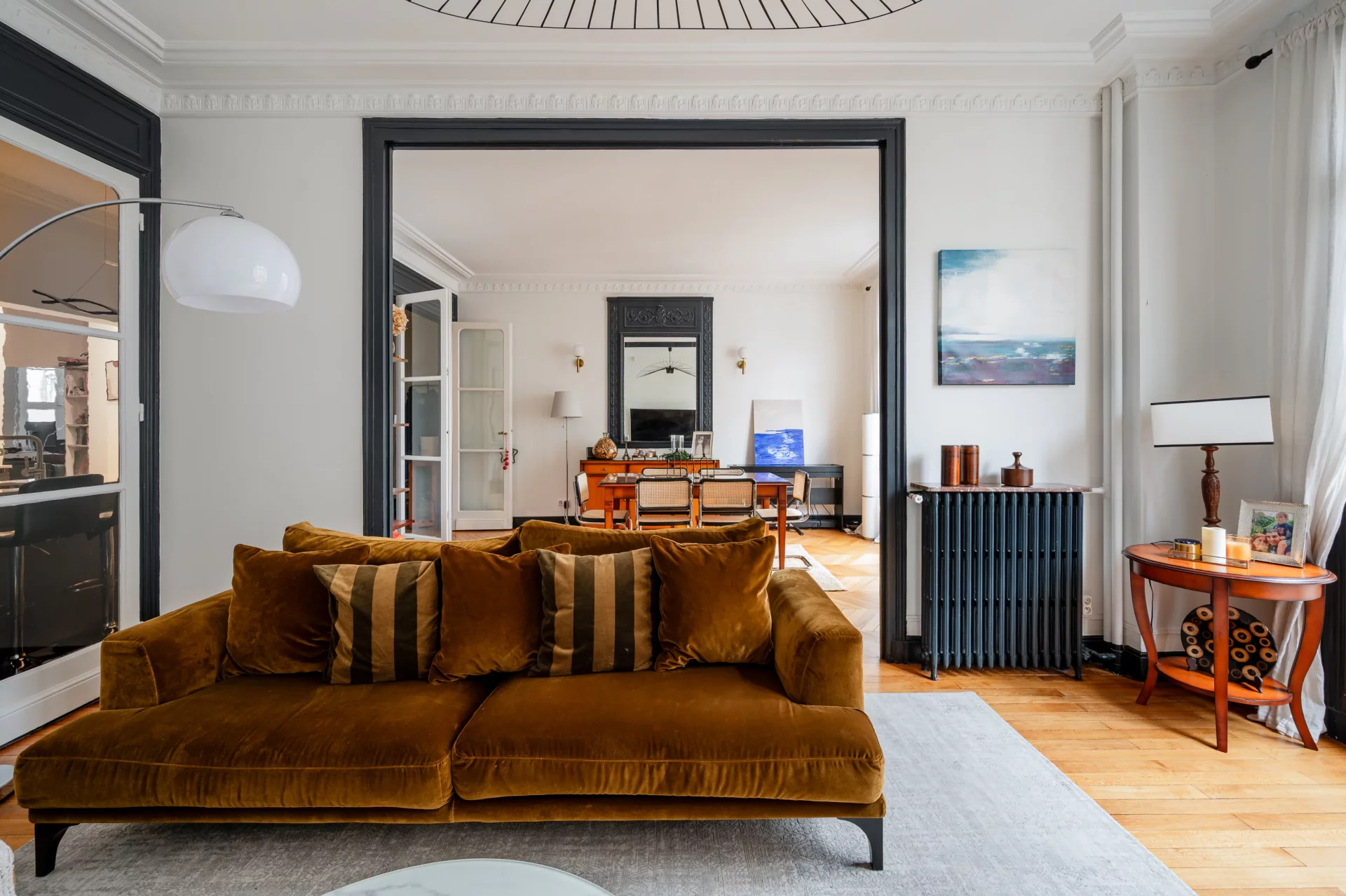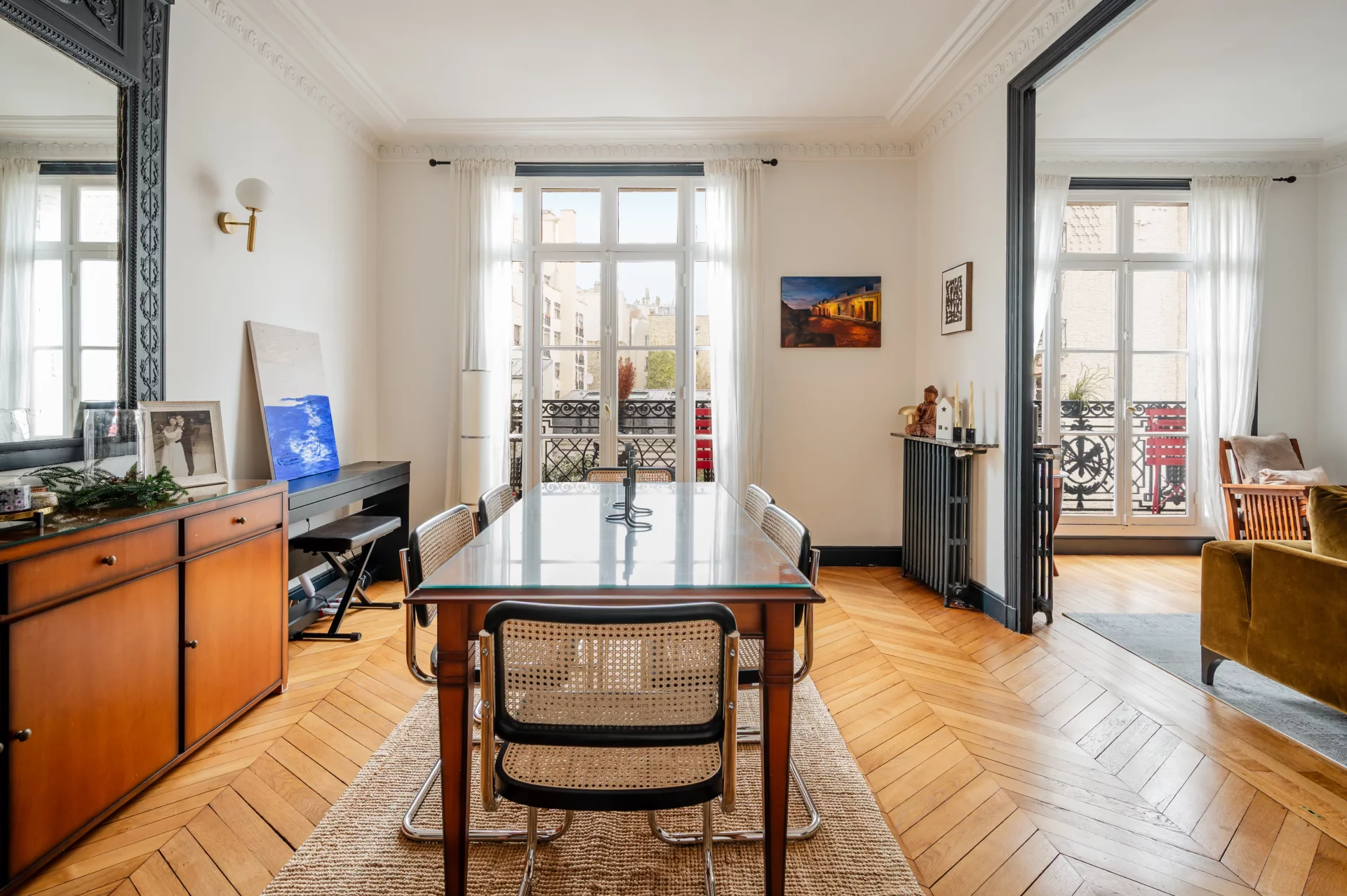 L'appartement a conservé le charme de l'ancien : parquet, moulures, et bénéficie de nombreux rangements grâce à son plan optimisé.
