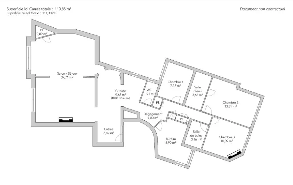 - Habitable : 110,85 m² Total : 111,30 m²