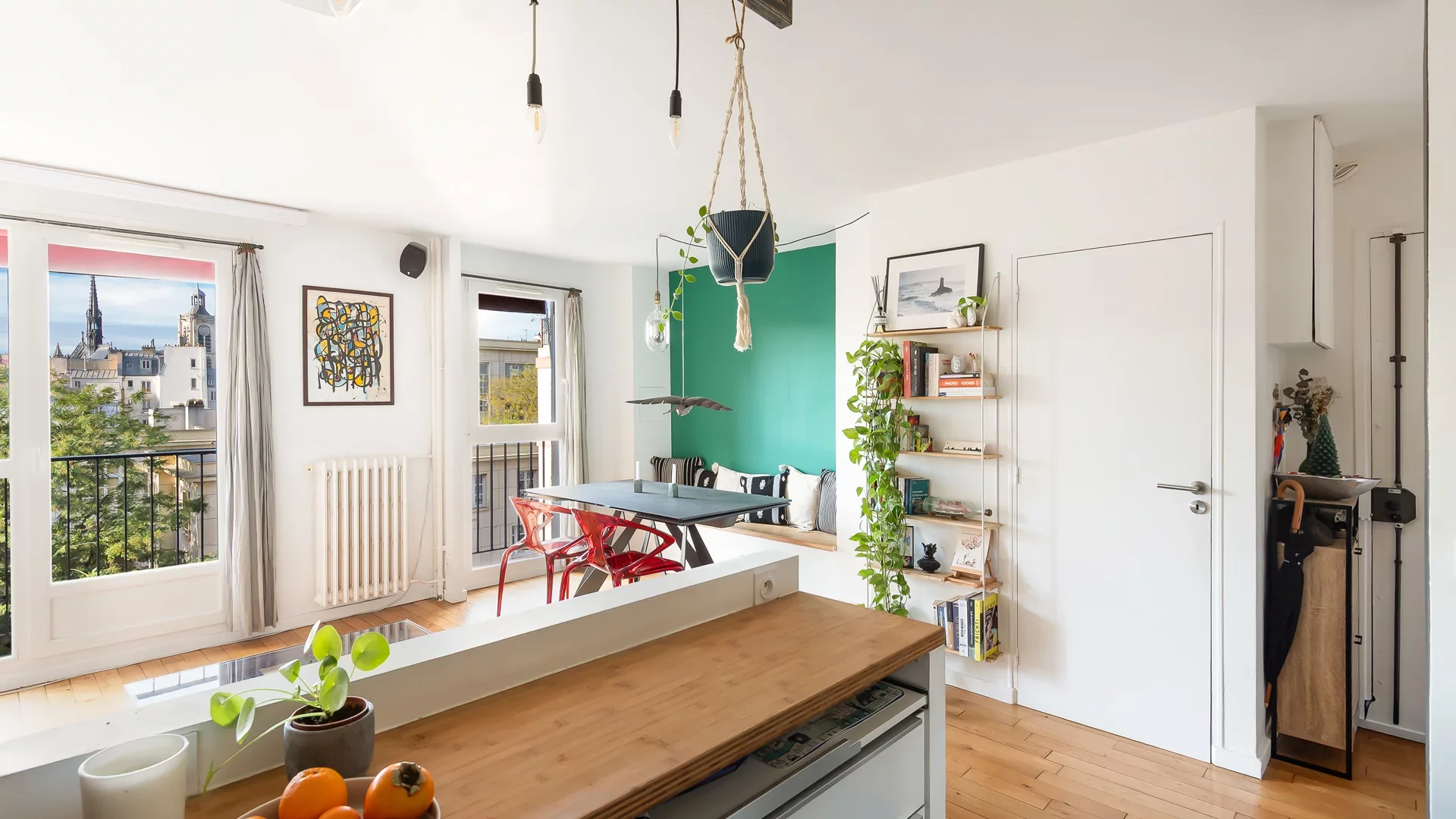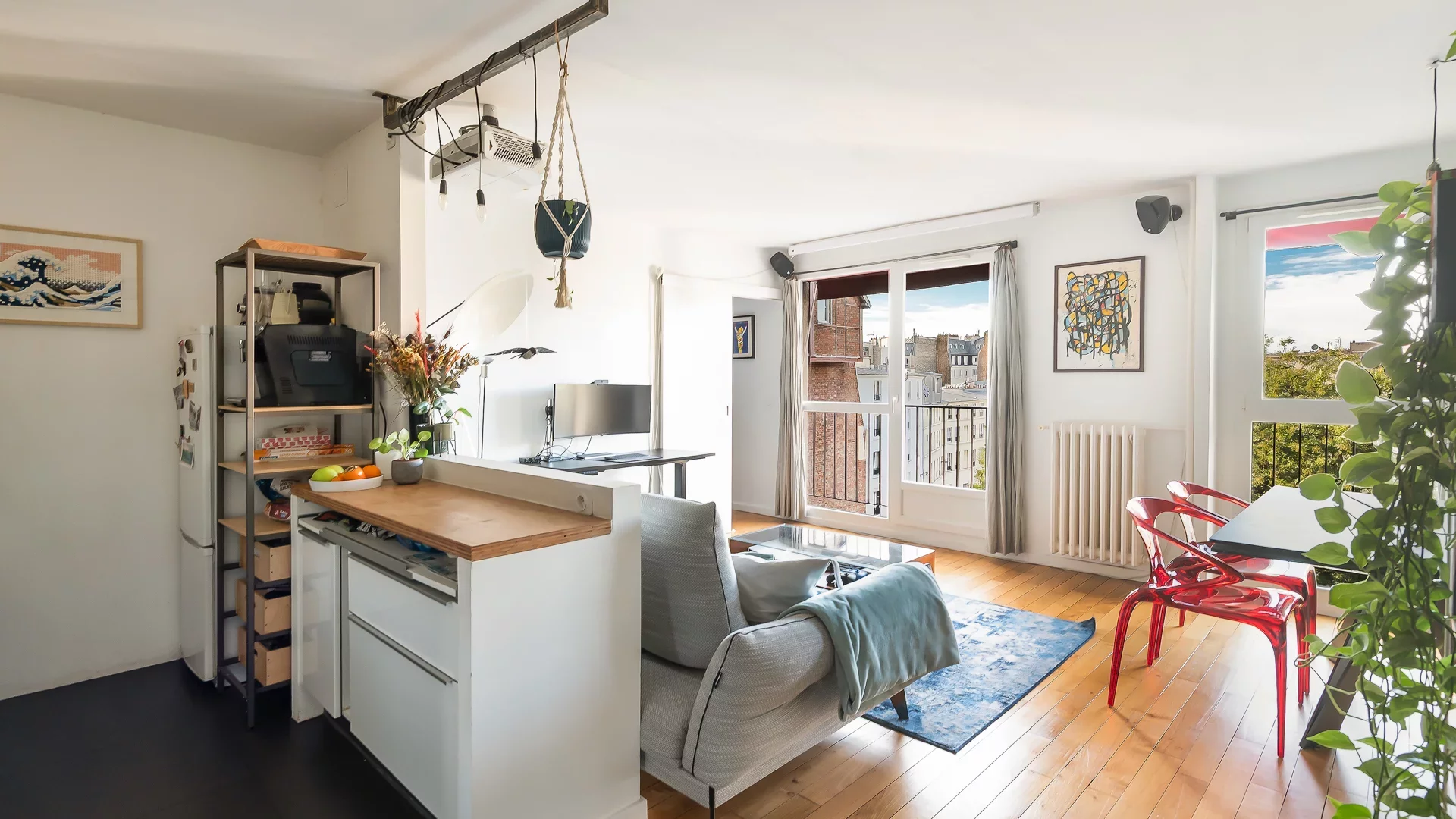 Idéalement situé à quelques pas du canal Saint-Martin, au sein d'une copropriété bien tenue avec gardien. Au calme, ce charmant appartement de deux pièces, en parfait état, d'une superficie de 42,03m² loi Carrez, au cinquième étage par ascenseur, bénéficie d'une vue dégagée sur les toits de Paris. Exposé plein ouest et baigné de soleil, le plan compact sans aucune perte de place comporte une entrée, une très belle pièce à vivre avec sa cuisine ouverte et équipée offrant une vue sur les toits de Paris, des toilettes séparées, une chambre et sa salle de douche attenante. Aucun vis-à-vis. Local vélo. EXCLUSIVITÉ.
