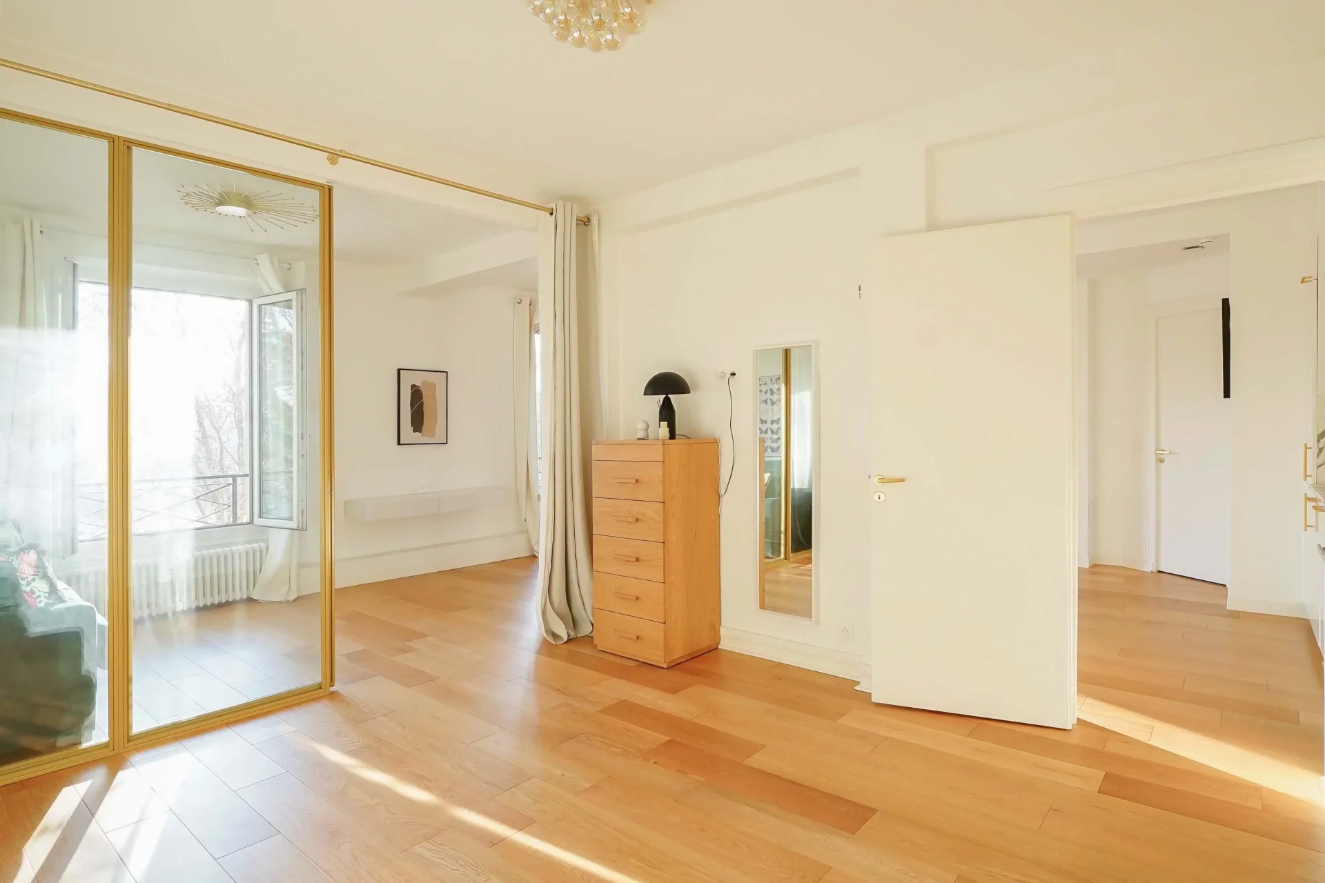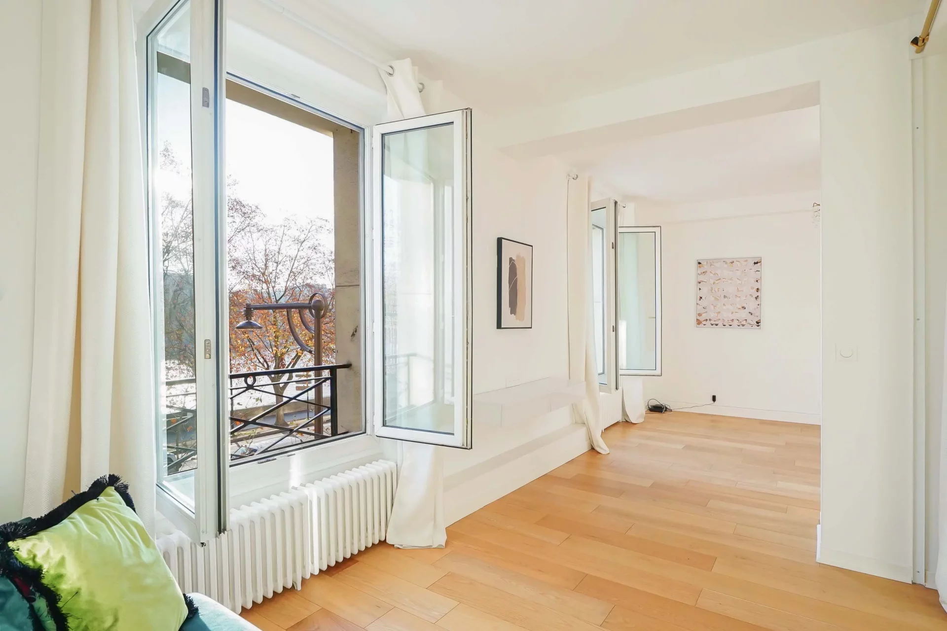 Entièrement rénové par architecte, il offre une entrée ouvrant sur un séjour baigné de lumière avec une vue totalement dégagée sur la Seine et la tour Eiffel, une cuisine ouverte parfaitement équipée, une chambre disposant de nombreux rangements ainsi qu'une salle de douche avec espace buanderie et toilettes.
