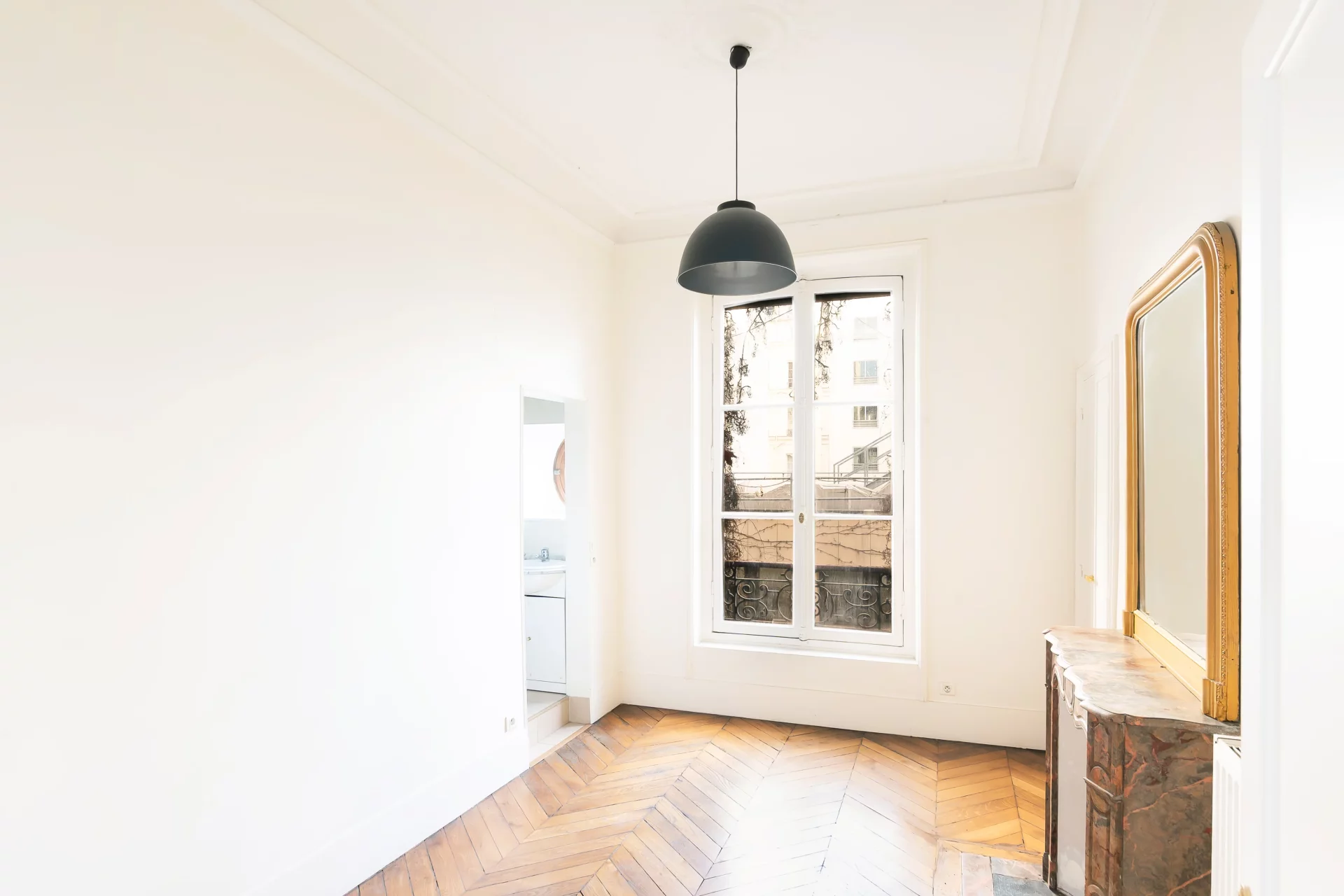 Charme de l'ancien avec magnifiques moulures et cheminée préservés. Hauteur sous plafond de 3.50m.