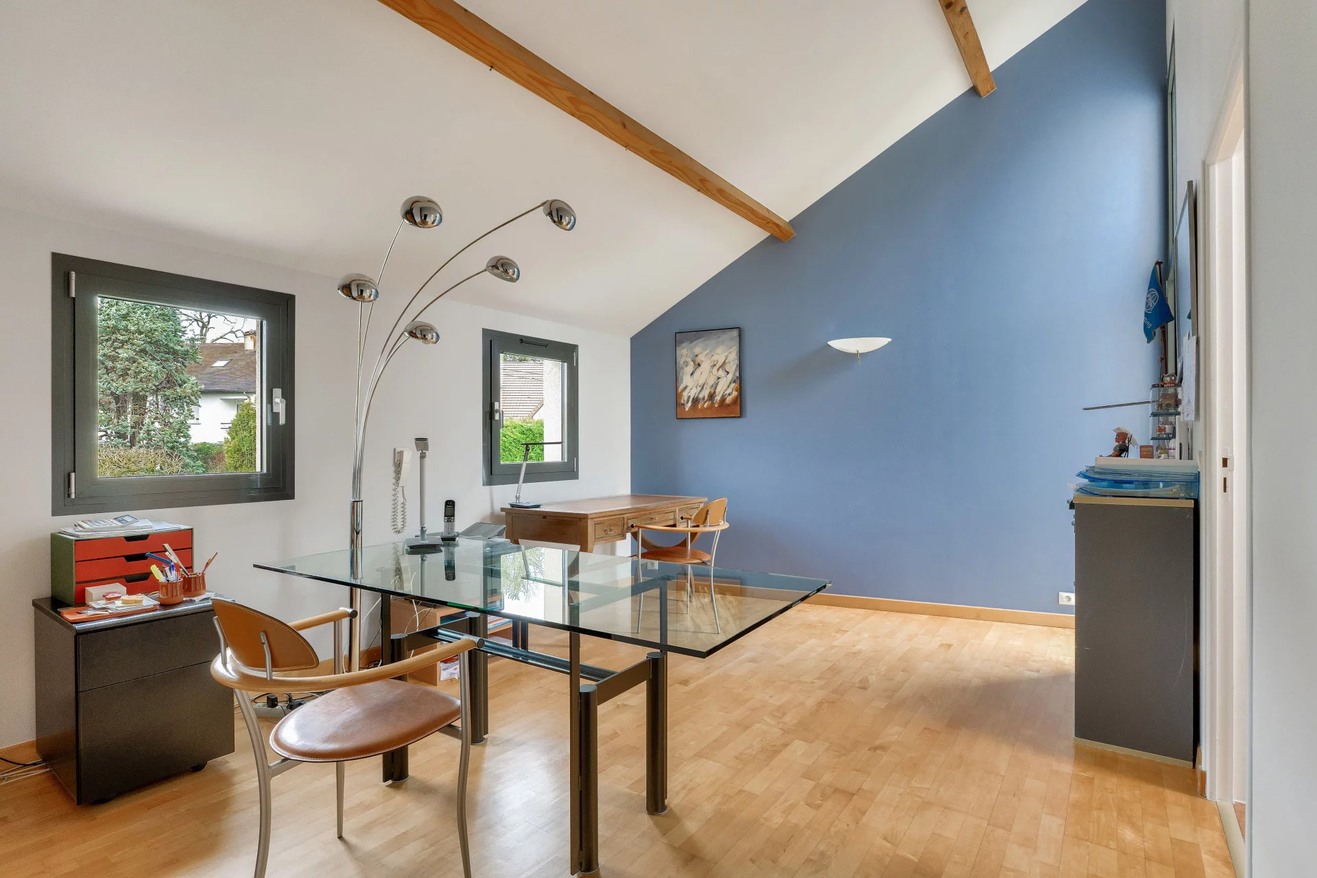 Une aile indépendante, subtilement intégrée propose un bureau en rez-de-chaussée avec une salle d’eau, une chambre à l'étage, parfait pour une profession libérale, un espace invités ou deux chambres supplémentaires.