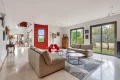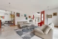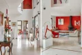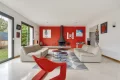 Dès l’entrée cathédrale, le regard est happé par les lignes pures et les volumes spectaculaires. Le vaste séjour traversant habillé de murs rouges profonds et rythmé par une cheminée centrale au design sculptural ouvre sur une terrasse plein sud; en prolongement, un salon plus intime. Une salle à manger et une cuisine dînatoire composent un espace de vie fluide, propice à la convivialité et à la détente.