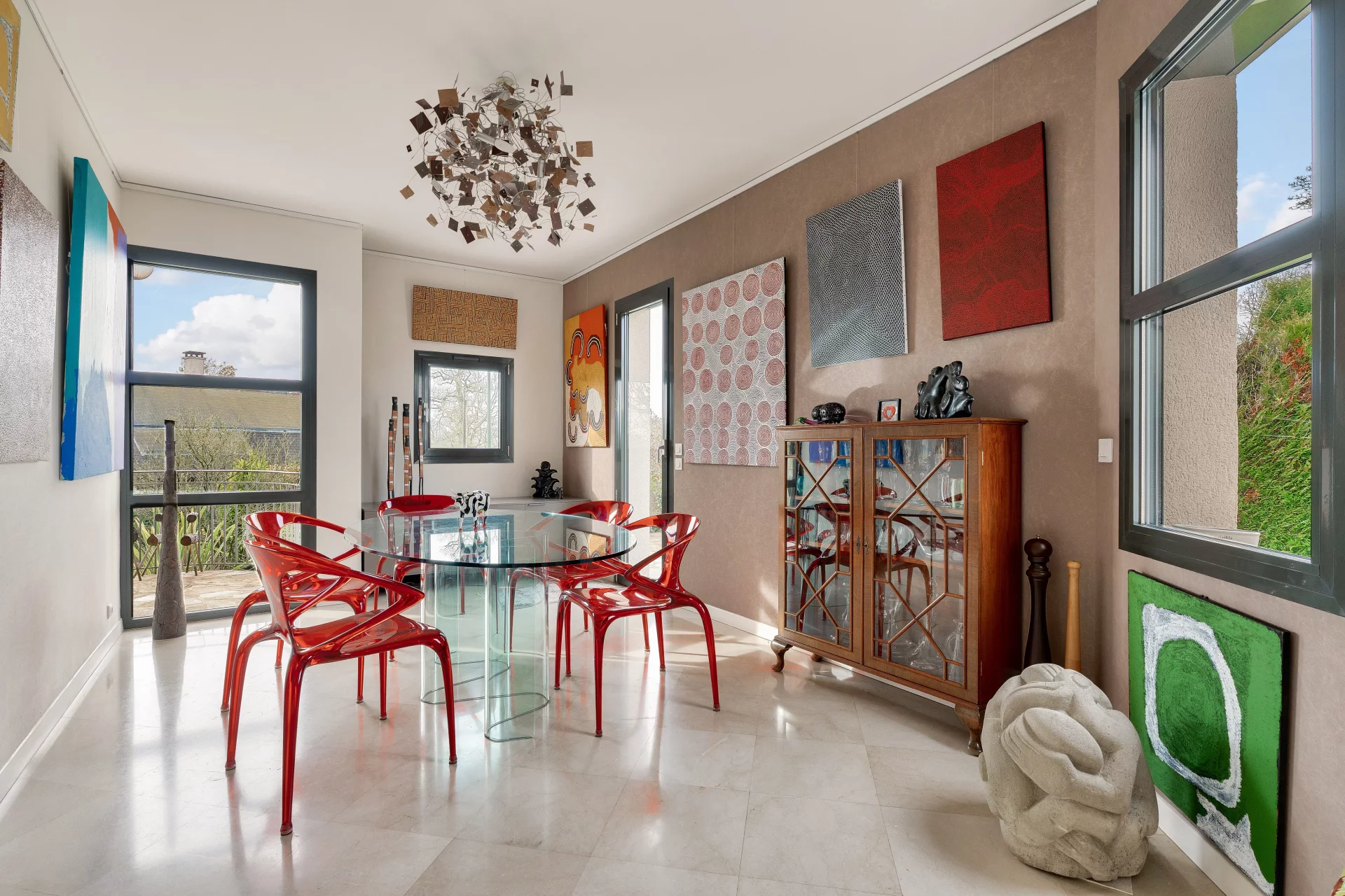 Née de l’imagination d’un architecte en 1995, cette demeure singulière d’environ 290 m² s’inscrit au cœur d’un jardin de 674 m², dans un quartier résidentiel prisé, à l’abri des regards. Un art de vivre pensé autour de la lumière, de l’espace et du confort.