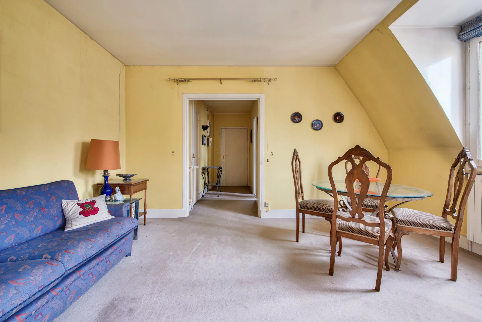 Avenue Georges Mandel, au sein d'un magnifique immeuble en pierre de taille de haut standing, appartement à rénover de 55m2 au sol (52,35m² loi Carrez) situé au dernier étage par ascenseur.