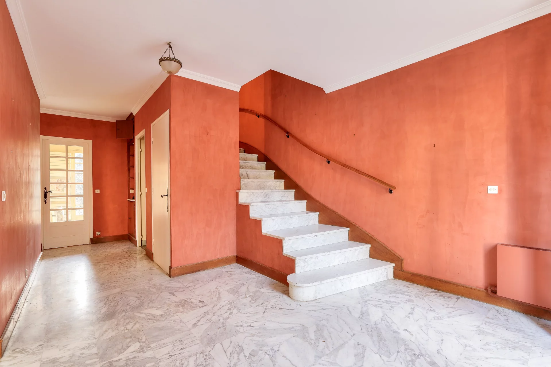 Dès l’entrée, la maison séduit par ses volumes généreux : un vaste hall dessert un double séjour traversant avec cheminée, baigné de lumière, ouvrant de plain-pied sur une terrasse exposée plein sud. Une cuisine indépendante ainsi que des toilettes invités complètent ce niveau.