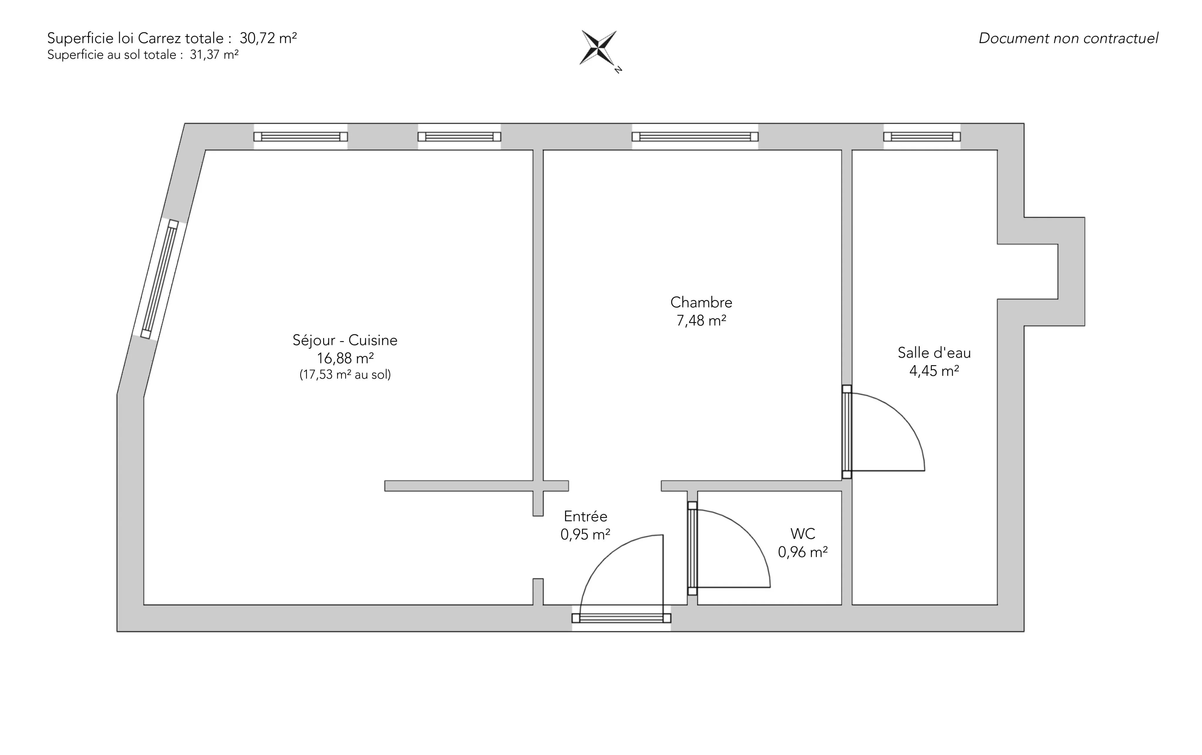 - Habitable : 30,72 m² Total : 31,37 m²