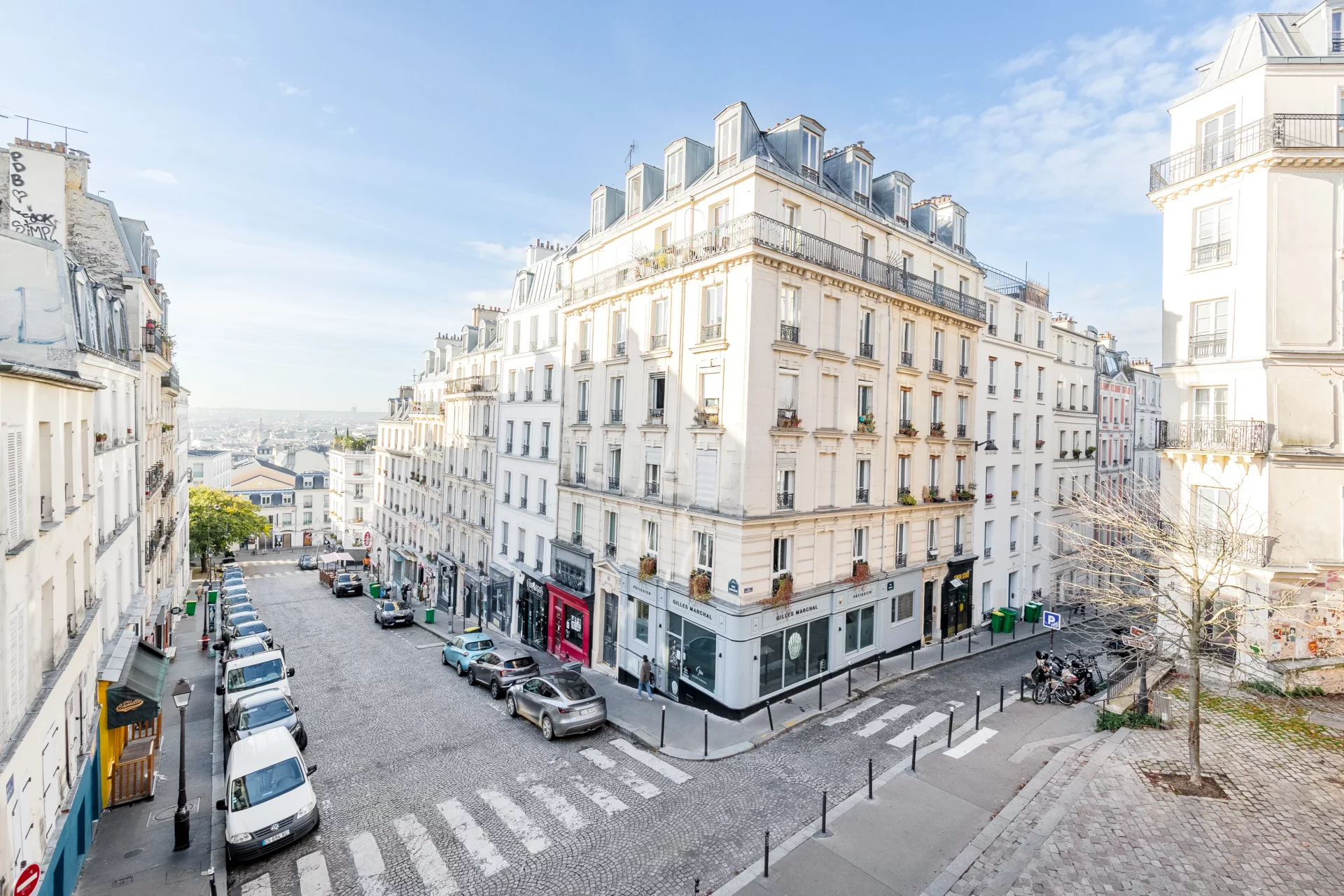 Cet appartement a bénéficié d'une rénovation d'architecte et propose un plan idéal, une décoration soignée et une vue dégagée sur les rues environnantes, la Place Émile Goudeau et au loin, Paris.