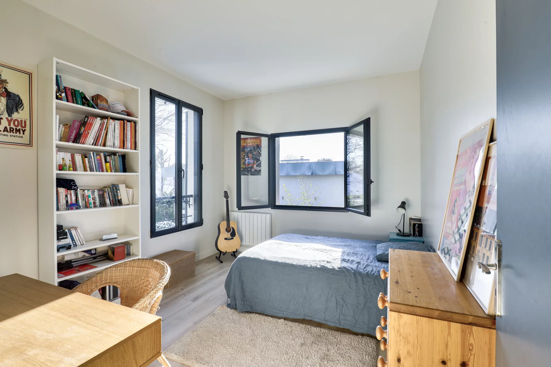 Implantée sur un terrain de 402 m², cette maison contemporaine allie confort moderne et décoration soignée. Elle offre des espaces lumineux et fonctionnels, avec un jardin exposé est et sud, permettant de profiter du soleil tout au long de la journée.