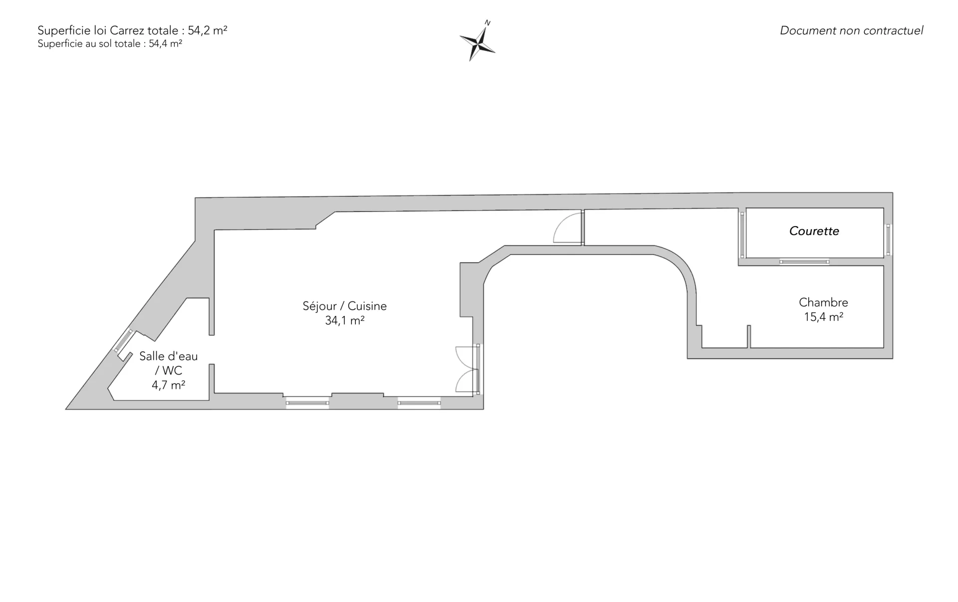 | 1x Chambre | 15.4 m² | Étage : 5ème |
