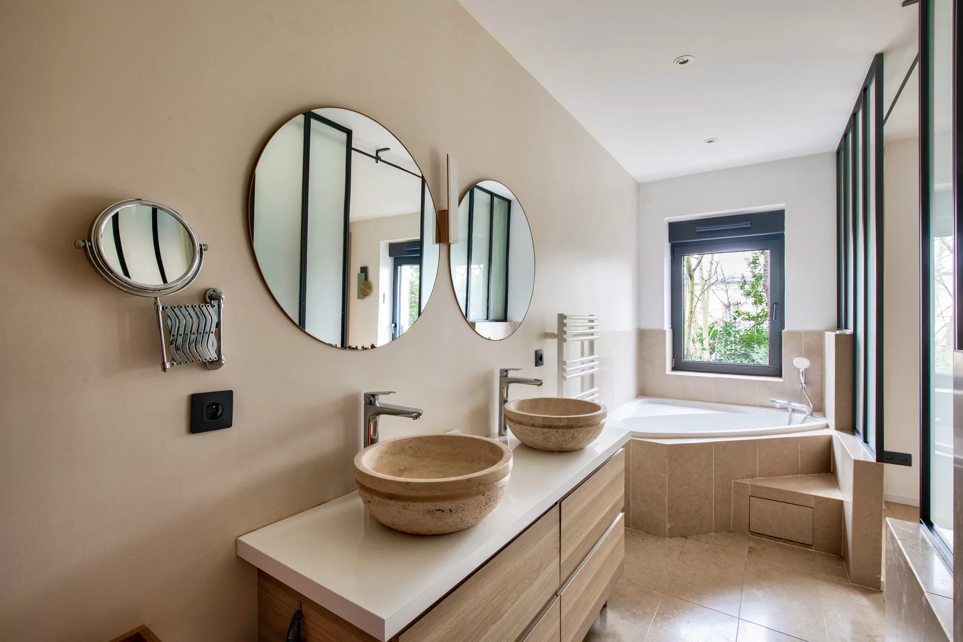 Cette maison au plan familial parfait propose une ambiance très élégante et contemporaine et se distingue par sa luminosité traversante.
