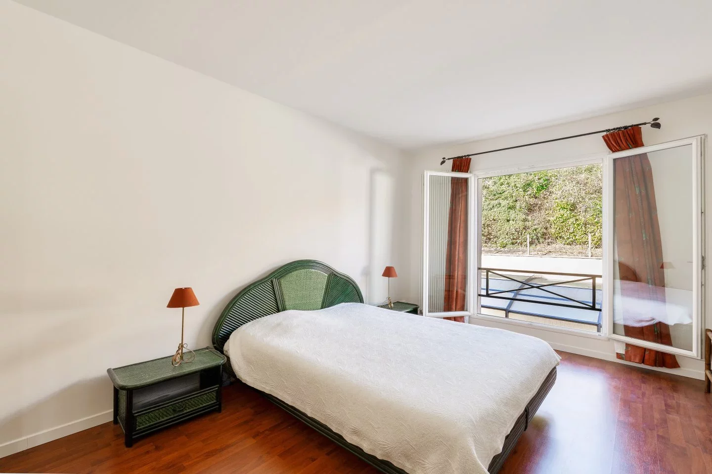 Accessible par une terrasse exposée sud de 50 m² surplombant le jardin, le hall d’entrée de 15 m² s’ouvre sur une double réception traversante de plus de 70 m² avec cheminée, prolongée par deux terrasses totalisant 120 m² exposées nord et sud. La cuisine dînatoire de 19 m², baignée de lumière, s’ouvre sur la terrasse nord, tandis que la suite parentale de 44 m² bénéficie d’un accès direct à la terrasse sud.