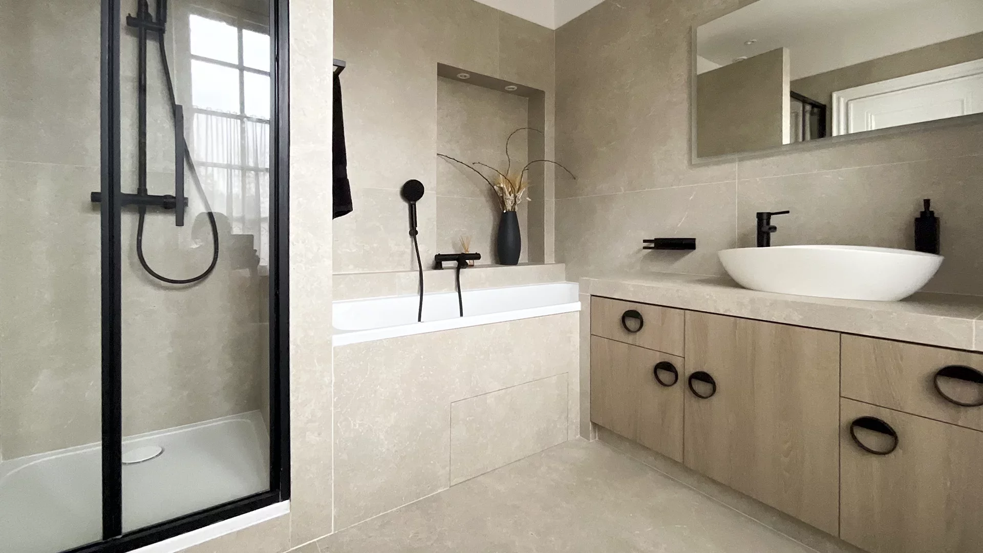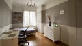 Le rez-de-chaussée s’ouvre sur une superbe entrée desservant un vestiaire, un vaste salon sublimé par un parquet d’époque, une cheminée et de délicates moulures, ainsi qu’une cuisine dinatoire conviviale et un élégant bureau.