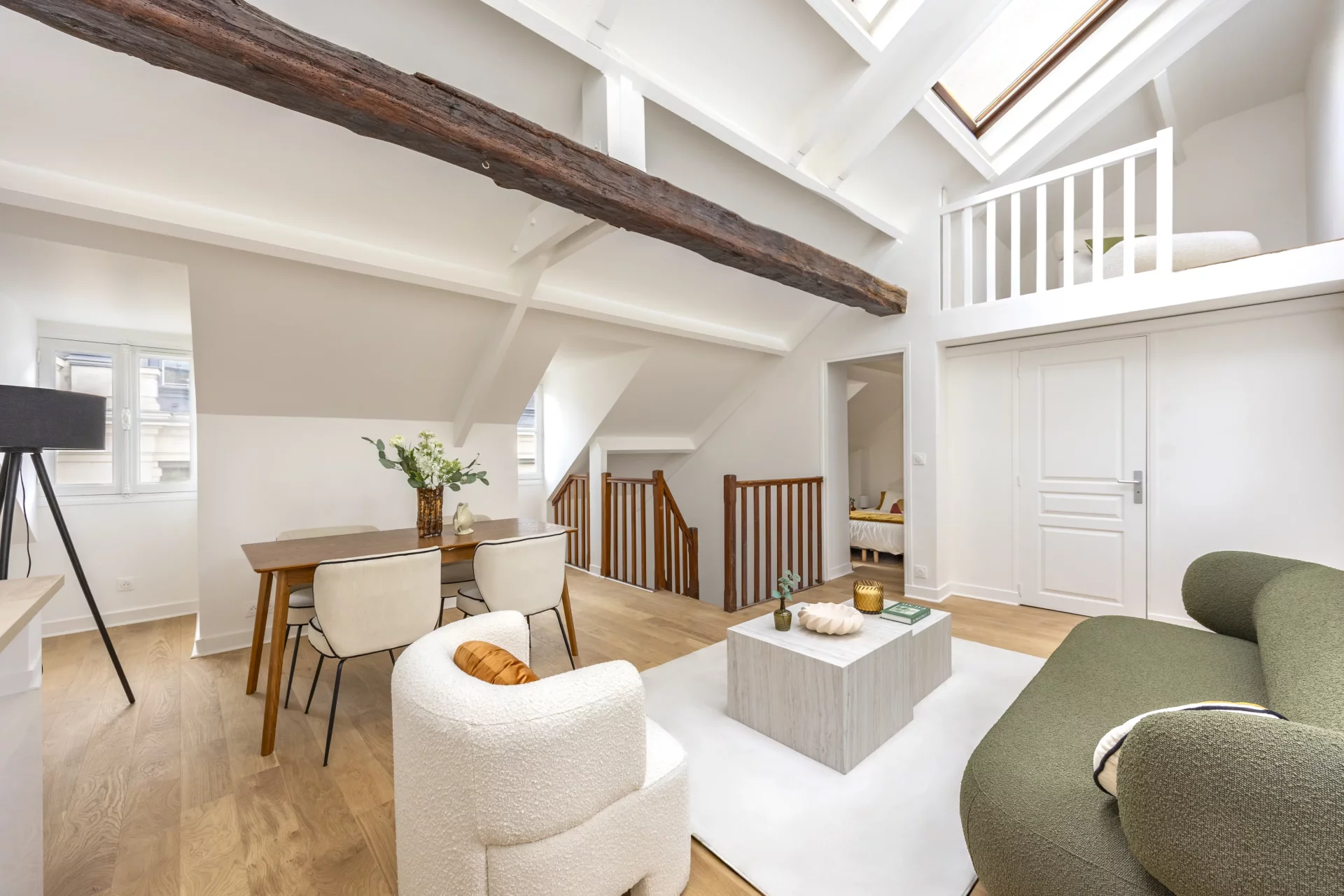 Idéalement situé à Hôtel de Ville, dans un immeuble récemment rénové, un duplex d'une surface de 62,07m² au sol (50,71m² loi Carrez) accessible au cinquième étage par ascenseur. Il se compose d'une agréable pièce à vivre exposée à l'est, avec verrière et cuisine ouverte, de deux chambres, d'un espace mezzanine pouvant faire office de bureau, d'une salle de douche avec toilettes, et de toilettes séparés. Vous serez séduits par son emplacement très central, ses volumes agréables et sa belle luminosité.