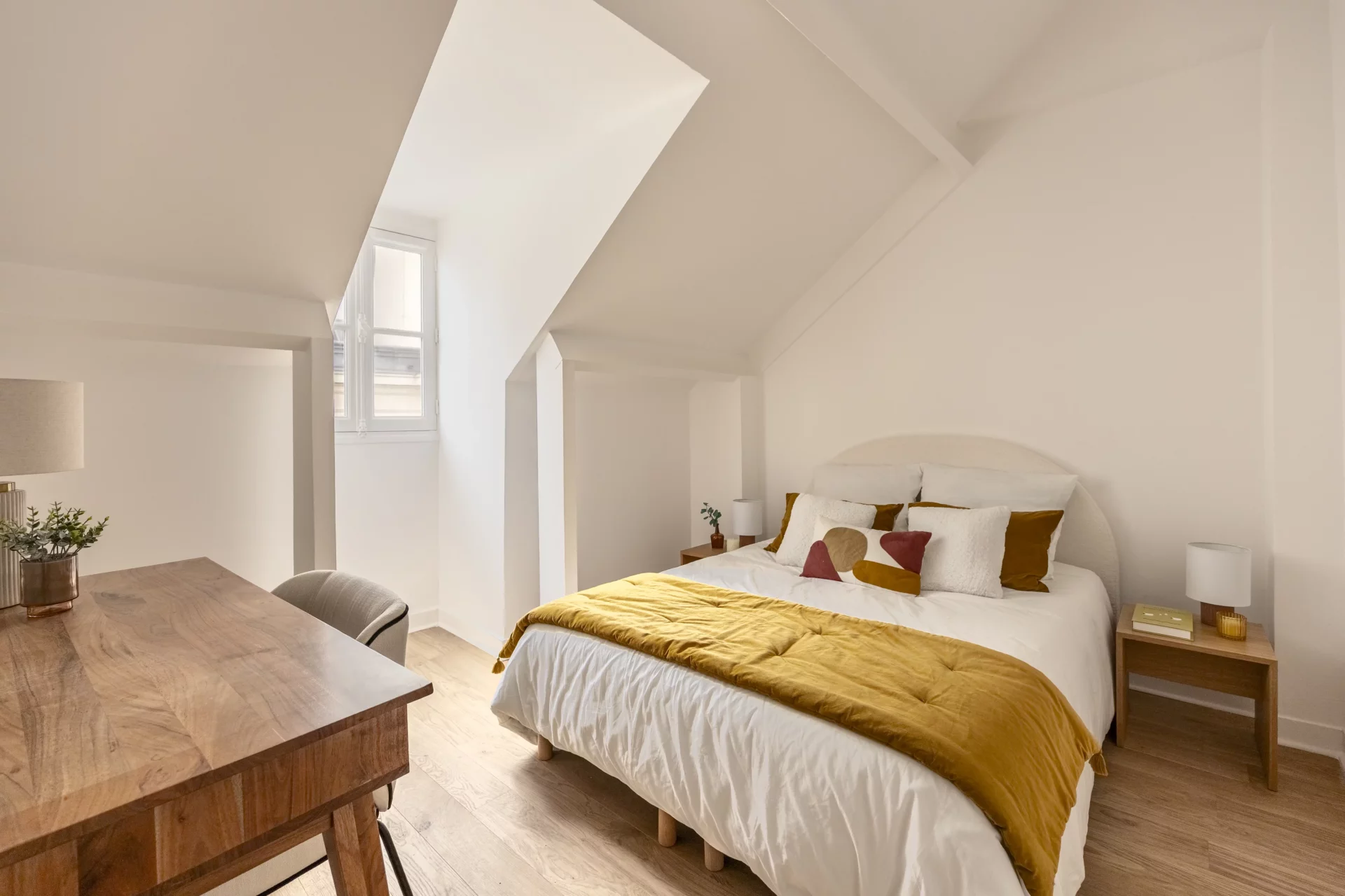 Étage : 6ème Exposition : Est Revêtement : Parquet Plafond : 3.9m |