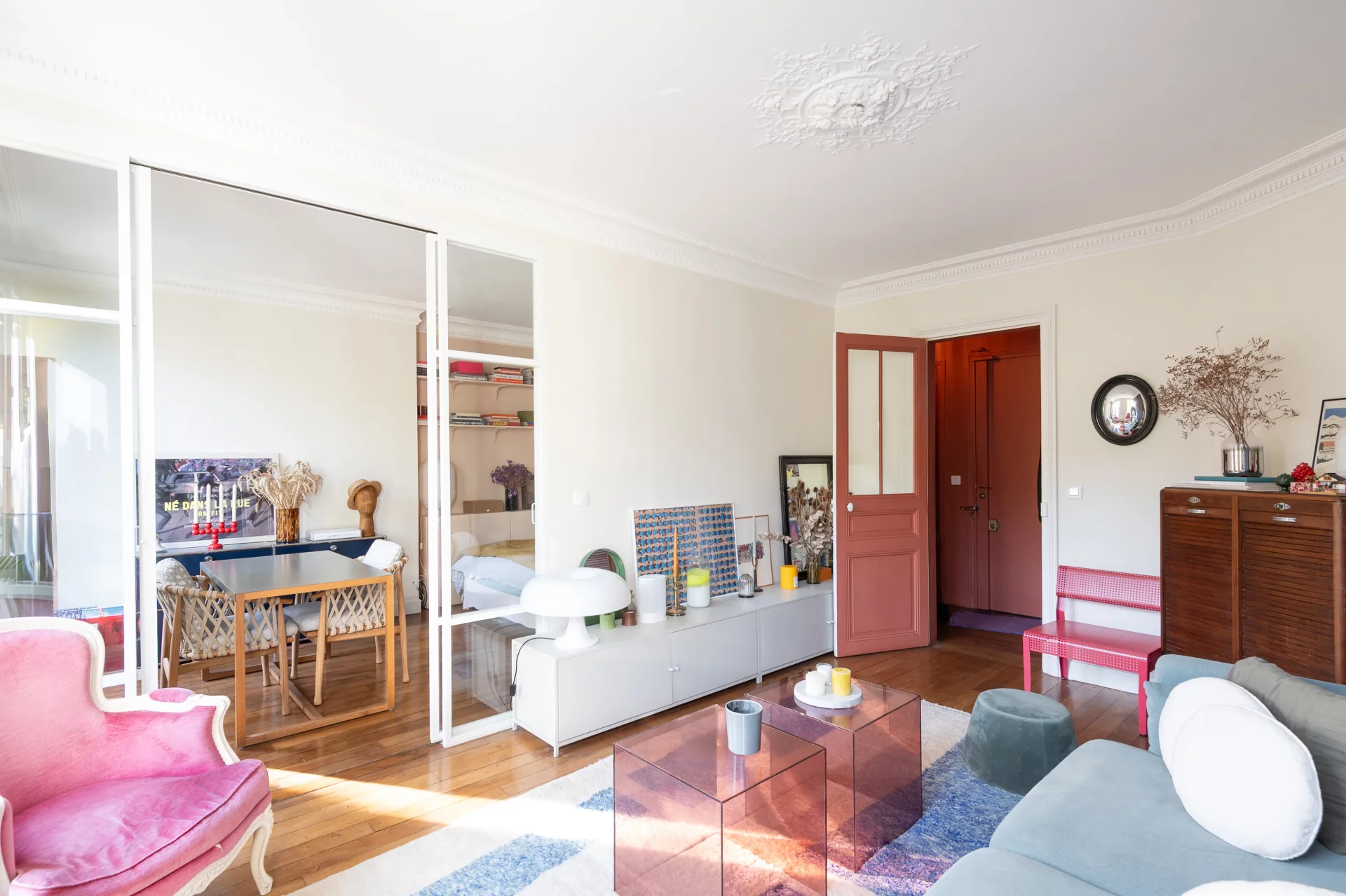 Exposé plein est, l’appartement profite d’une belle lumière et d'une rénovation de qualité tout en ayant préservé le charme de l'ancien.