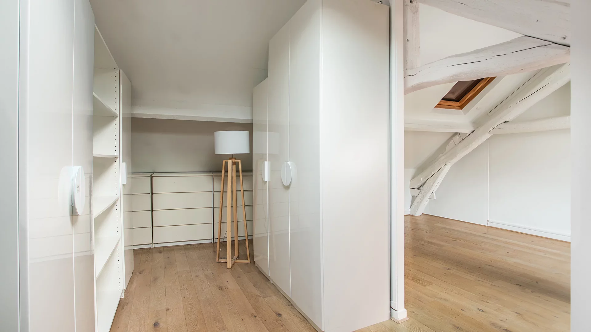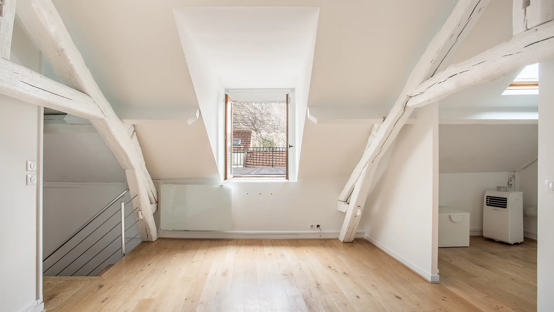 Le dernier étage accueille une suite parentale sous combles, avec dressing, salle d’eau et terrasse-solarium, bénéficiant d’une vue dégagée.