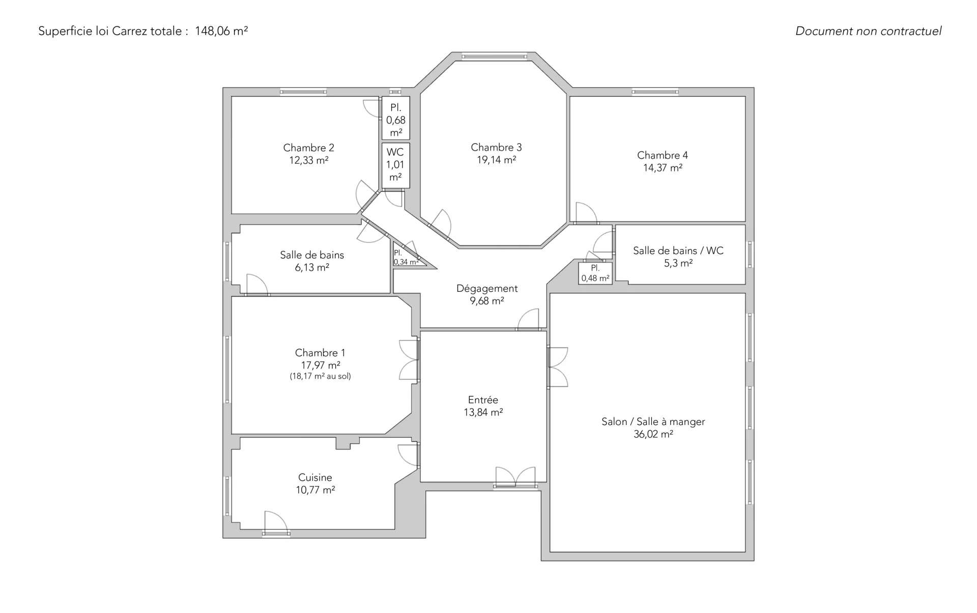 | 1x Placard | 0.48 m² | Étage : 1er |