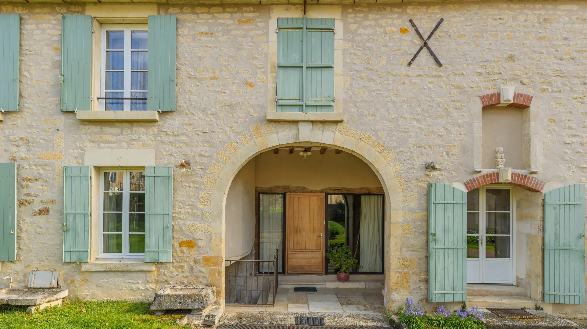 La maison principale, édifiée en 1850, développe 265m² de prestations de qualité. Dès l'entrée, elle distribue un bureau bibliothèque, une chambre, une salle de bains et des toilettes indépendantes.