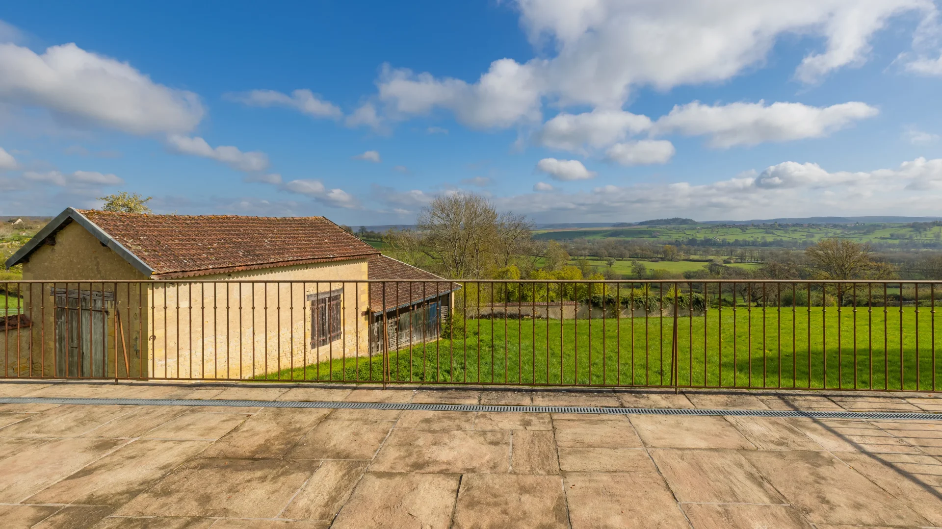 Le séjour et la cuisine, lumineux et harmonieusement agencés, s'ouvrent naturellement sur une terrasse offrant une vue dégagée sur la vallée de l'Yonne.