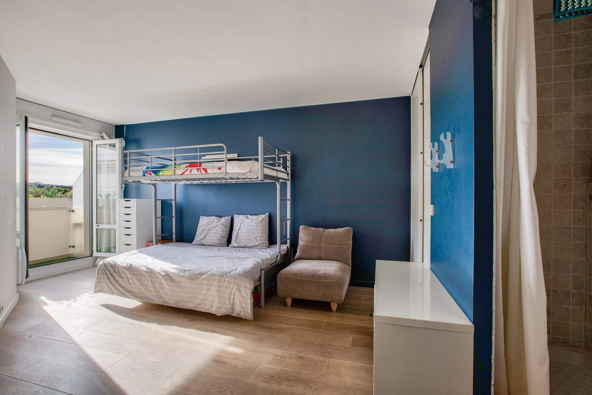 La partie nuit comprend une grande suite parentale avec dressing, salle de bains et bureau, une seconde chambre avec rangements et salle de douche privative, toutes deux donnant accès à un balcon exposé sud.