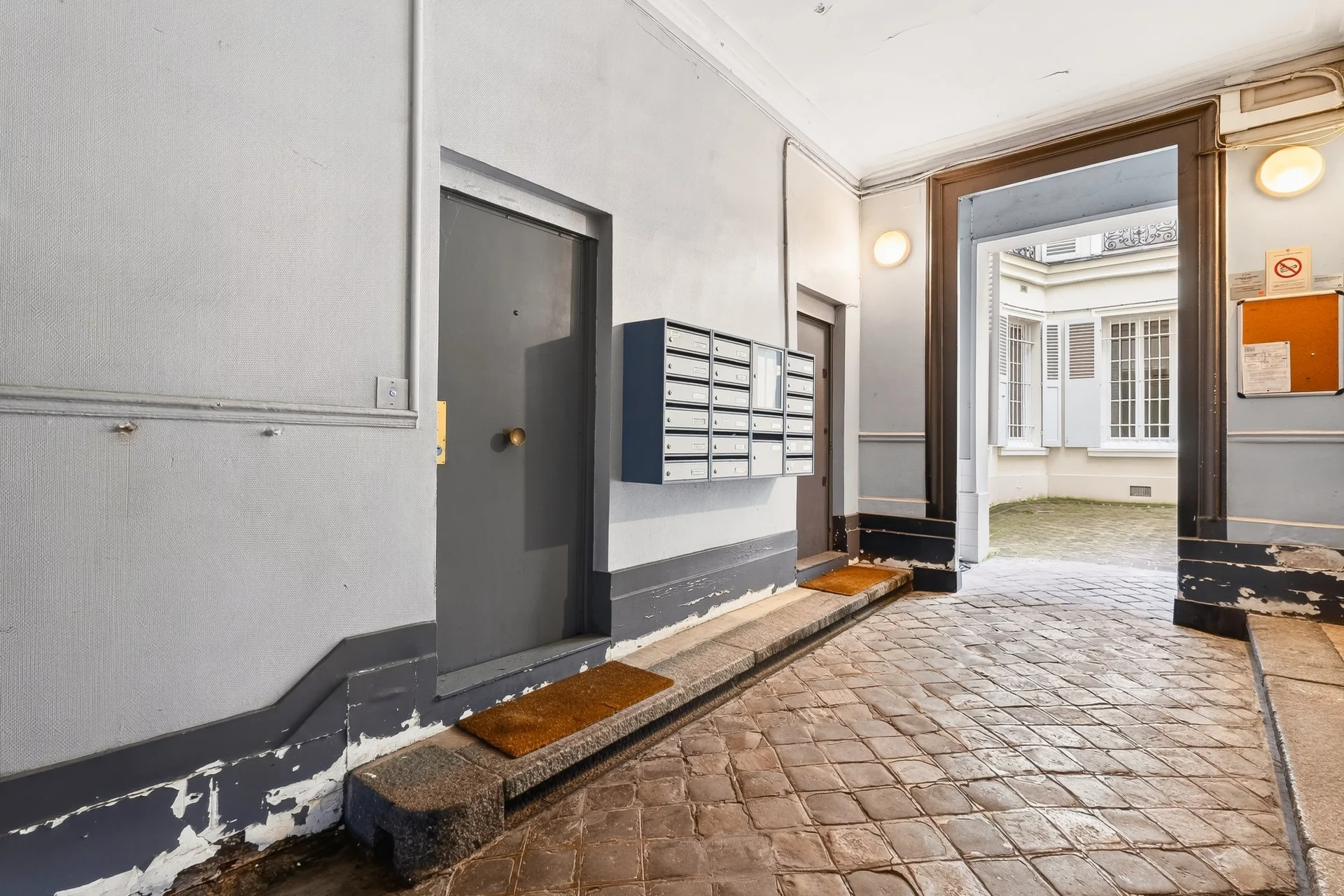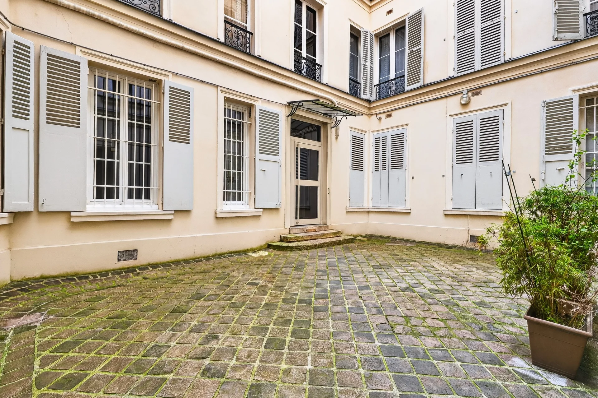 Situé en rez-de-chaussée d’un élégant immeuble en pierre de taille, gardienné et parfaitement entretenu, il bénéficie d’une belle hauteur sous plafond, apportant volume et confort.