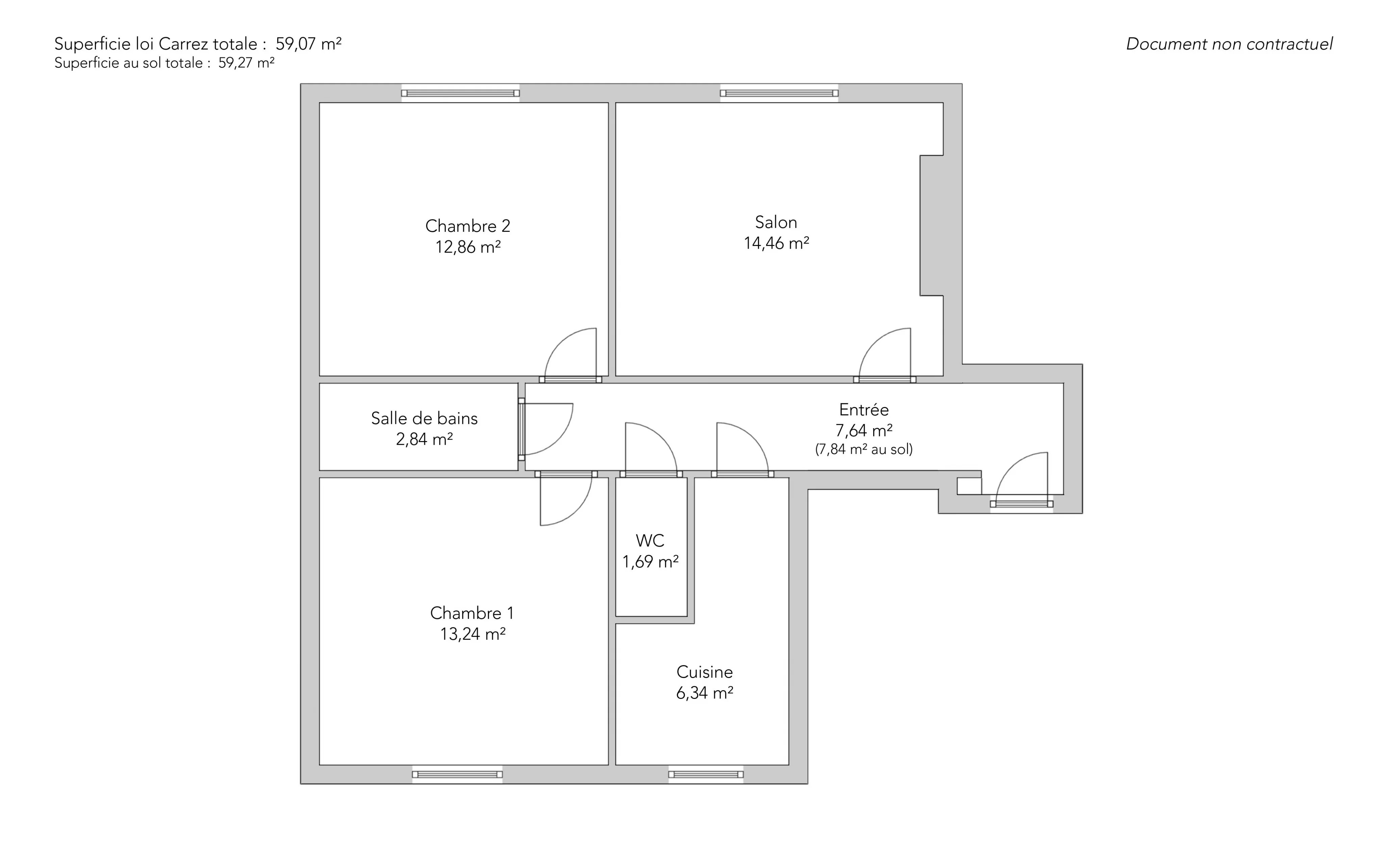- Habitable : 59,07 m² Total : 59,27 m²