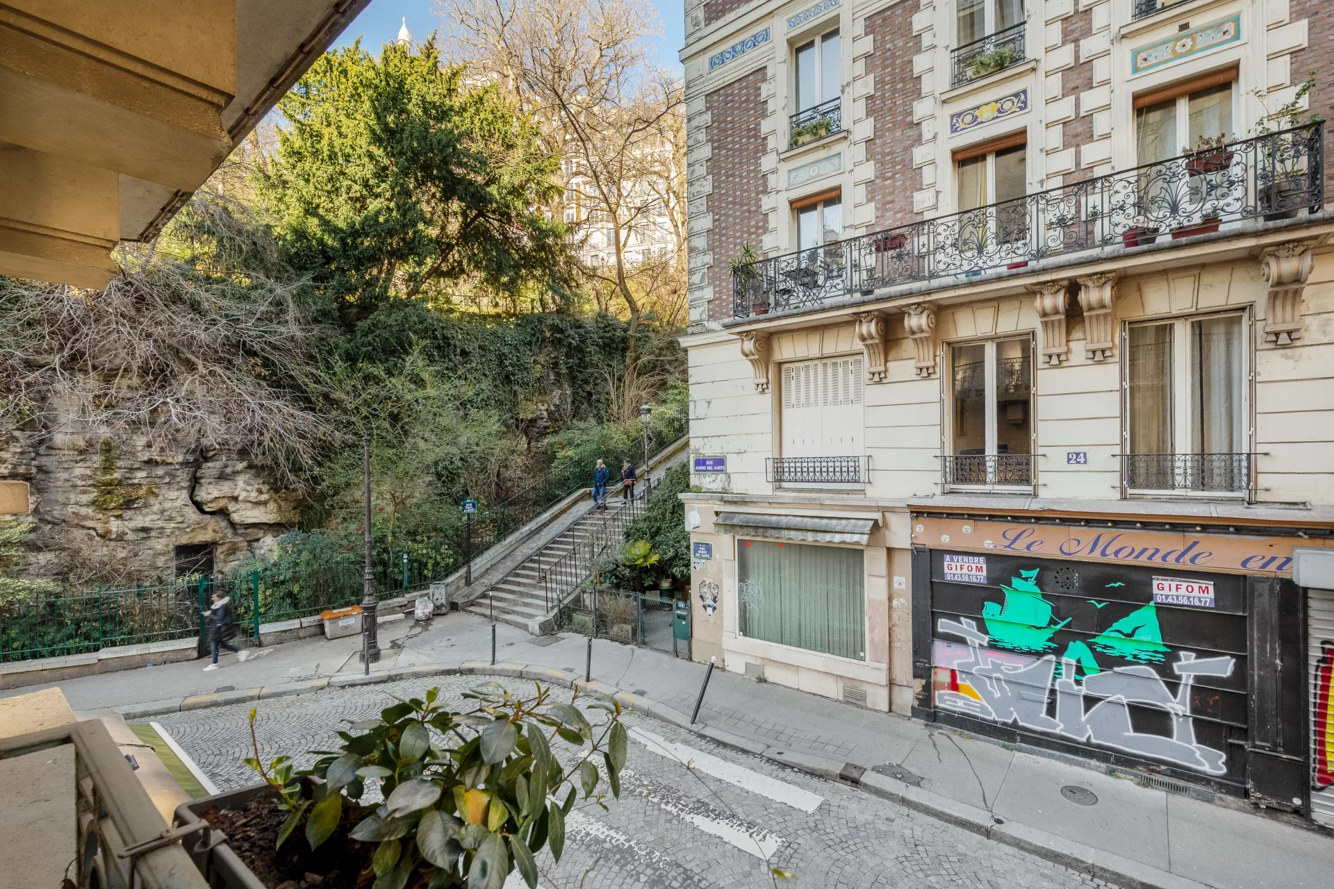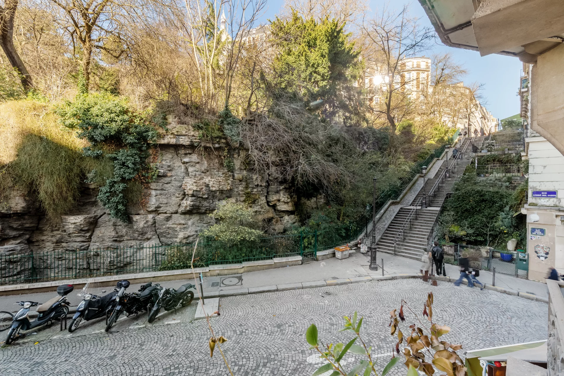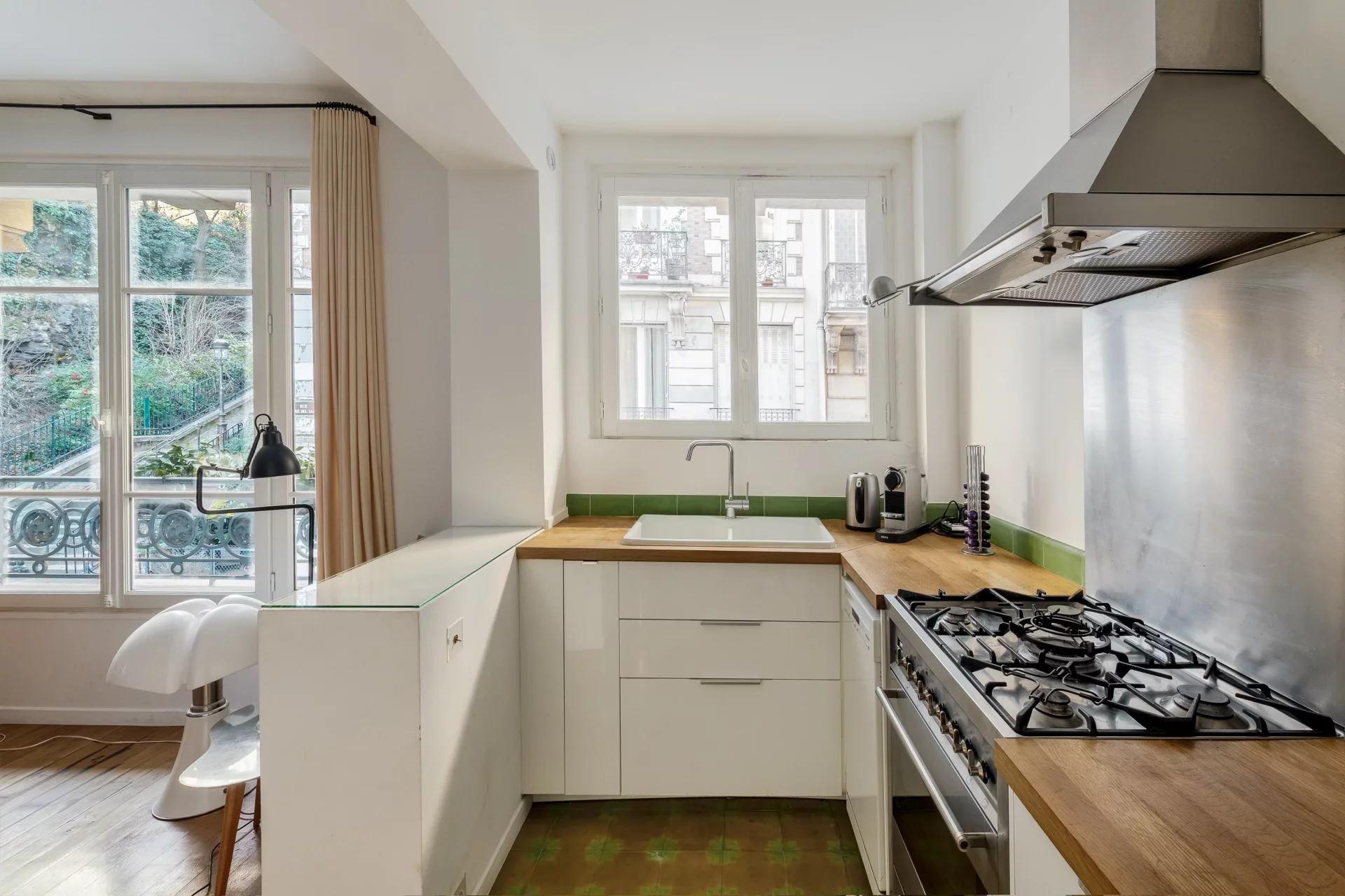 Il comprend une entrée, un vaste séjour offrant de belles ouvertures, une cuisine aménagée et équipée, deux chambres, une salle d'eau avec un espace buanderie et des toilettes séparées. Plan optimisé et sans aucune perte de place. Nombreux rangements intégrés. Éléments d'époques conservés. Installation d'une isolation phonique au sol. Cet appartement lumineux et sans vis-à-vis bénéficie d'un environnement calme et végétal, à proximité des jardins du Sacré-Cœur. Travaux de toiture votés à la charge du vendeur.