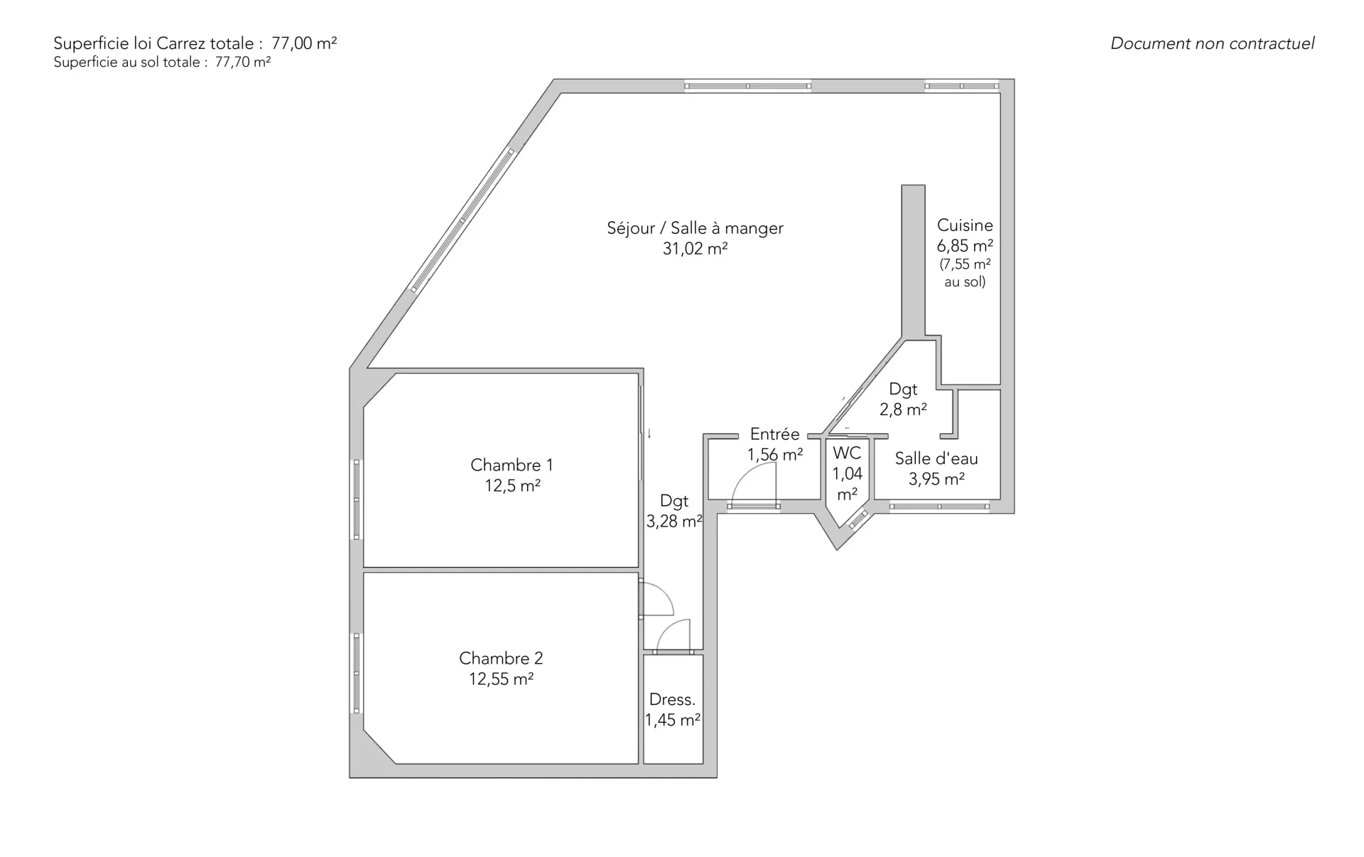 Quartier des jardins du Sacré-Coeur, au sein d'un très bel immeuble d'angle en pierre de taille avec ascenseur et gardienne à demeure, magnifique appartement de 77m² loi Carrez, en parfait état et entièrement rénové par architecte.