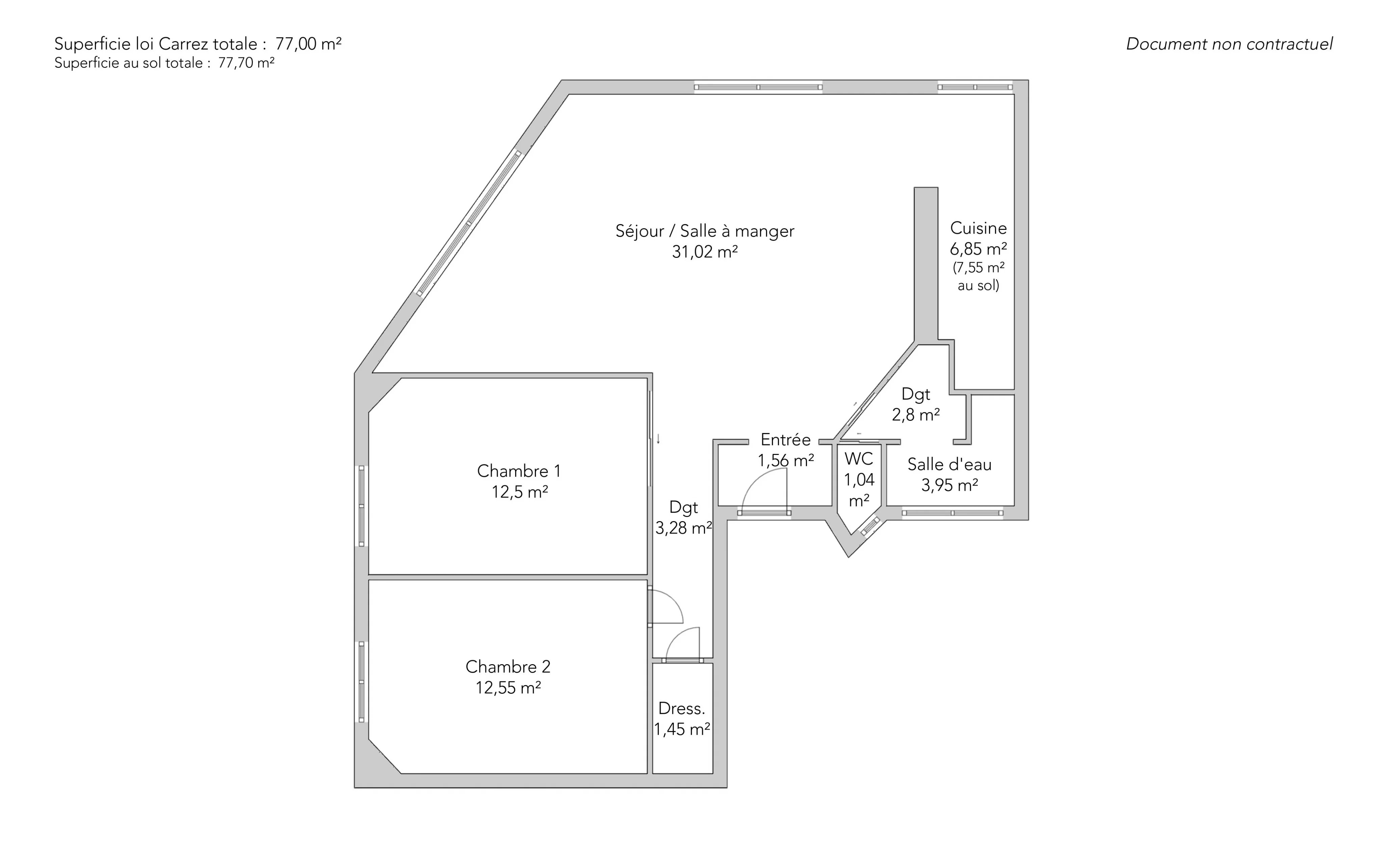 • Habitable : 77,00 m² Total : 77,70 m²