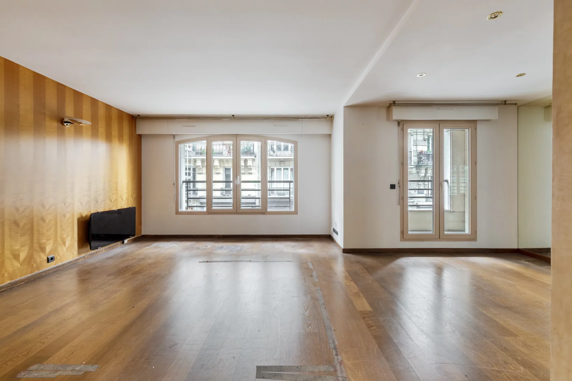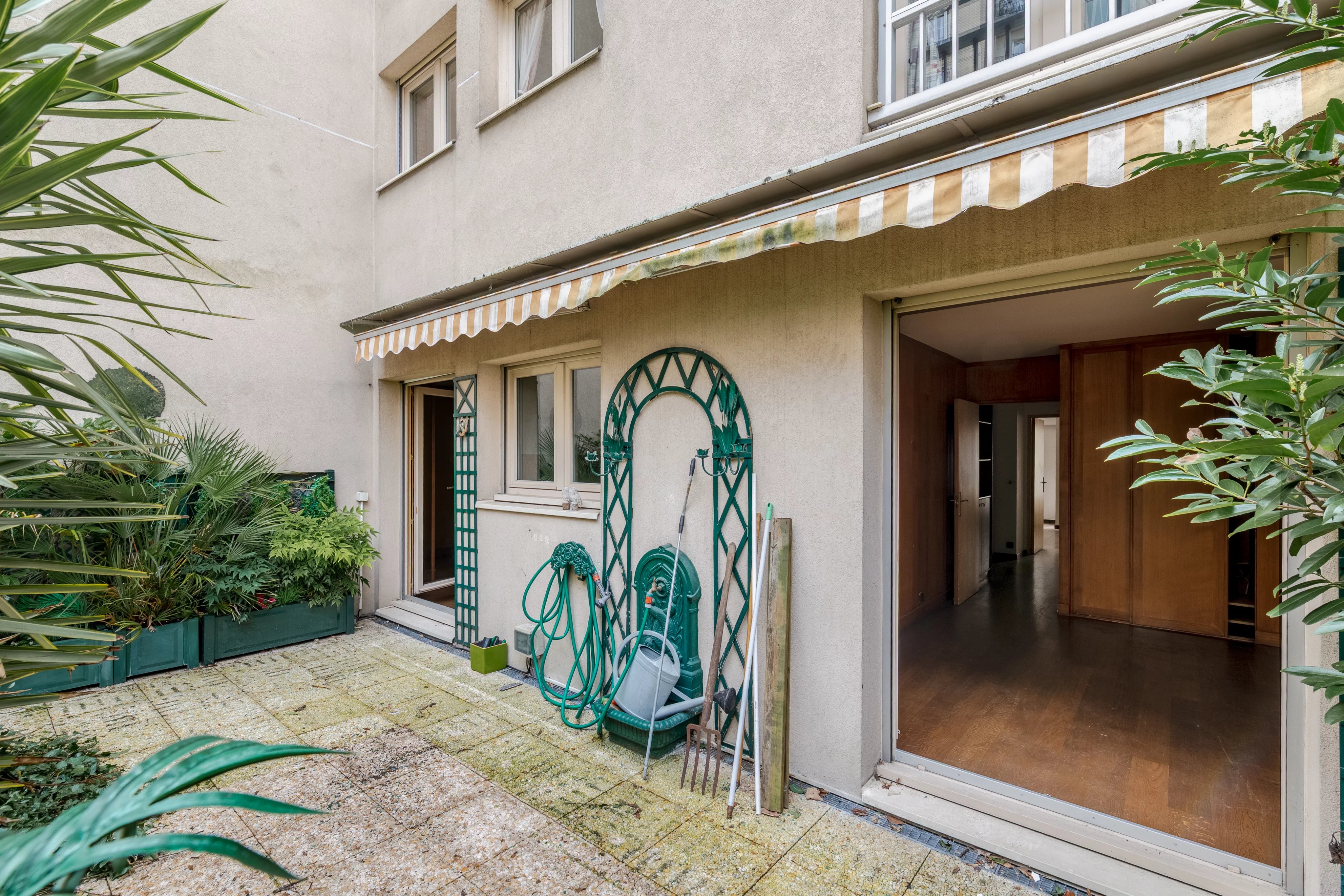 Au cœur de la rue Damrémont, au premier étage par ascenseur d'un immeuble récent des années 1990, appartement familial traversant de 91m² Carrez, à rénover, ouvert sur un généreux jardin de 68m².