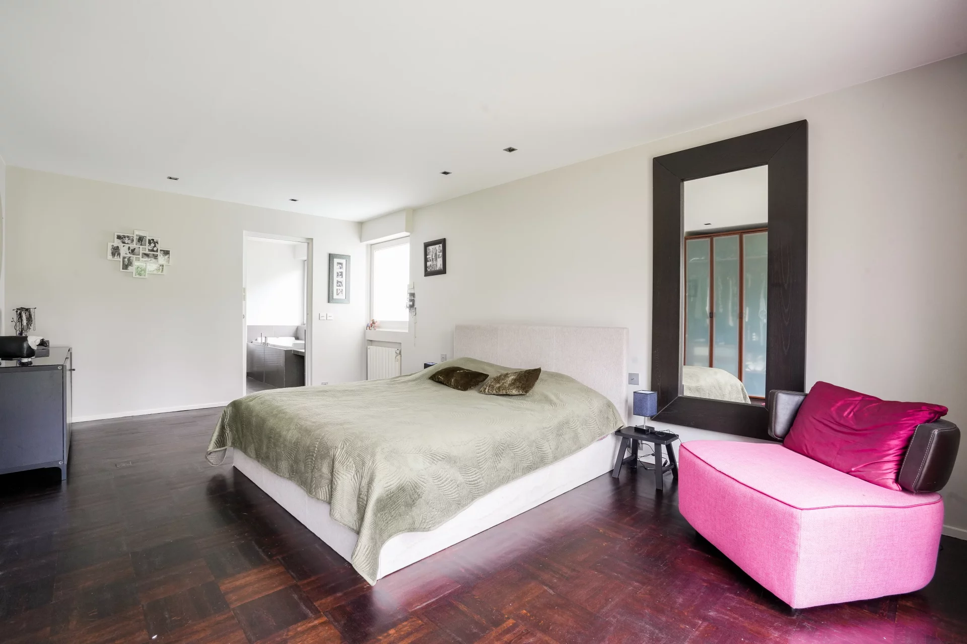 À ce même niveau, une suite parentale dispose de sa salle de bains et de rangements, offrant un confort de vie de plain-pied particulièrement recherché.