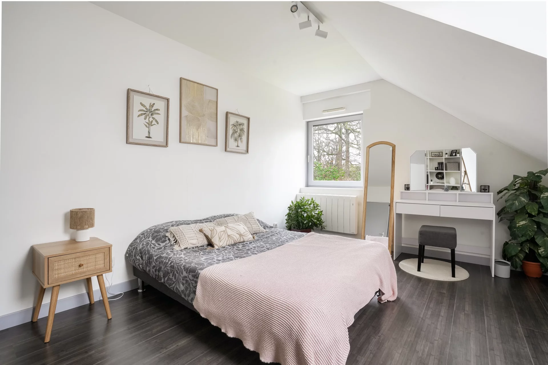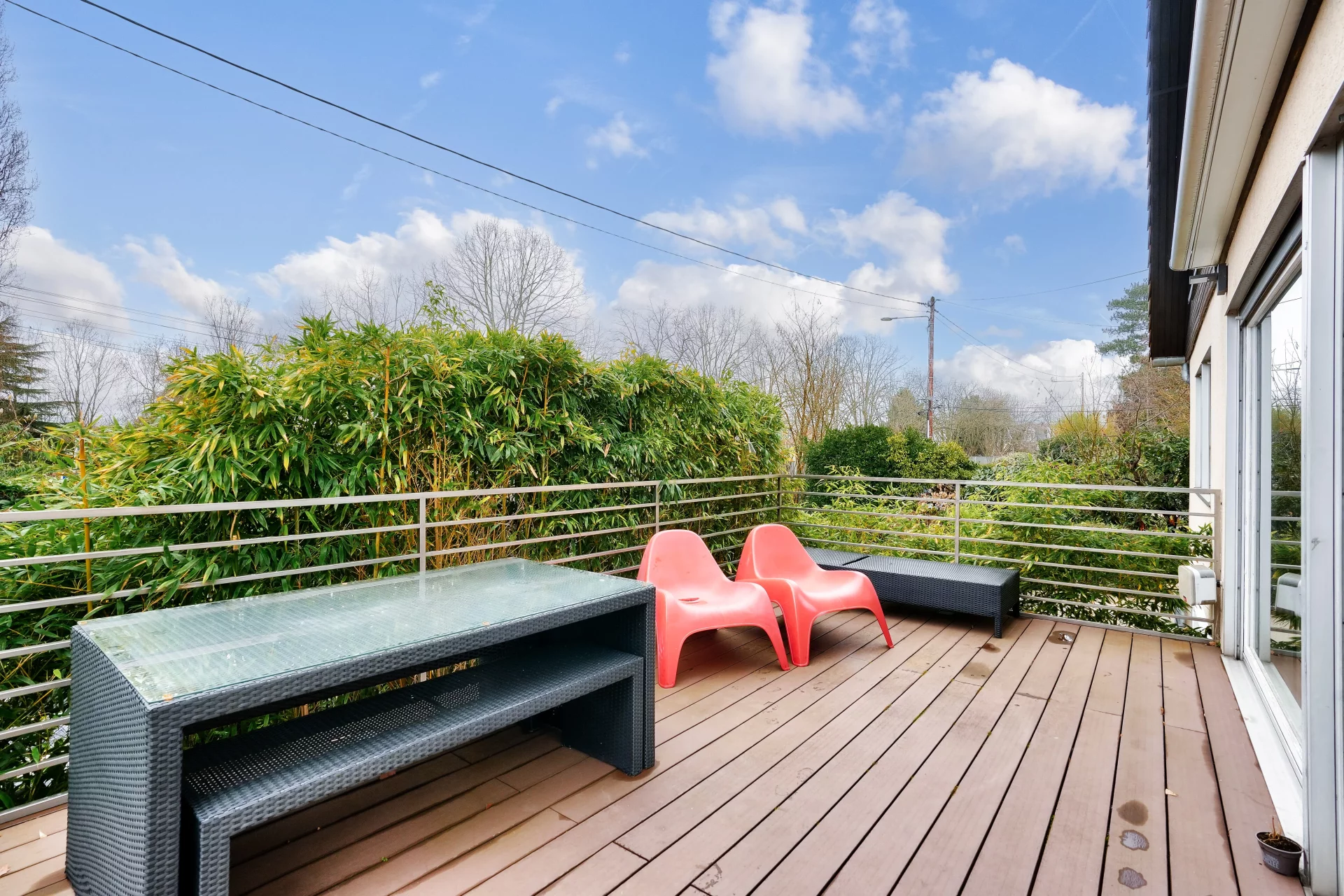 La propriété offre un cadre de vie paisible et verdoyant, avec la possibilité de stationner deux véhicules supplémentaires sur la parcelle.